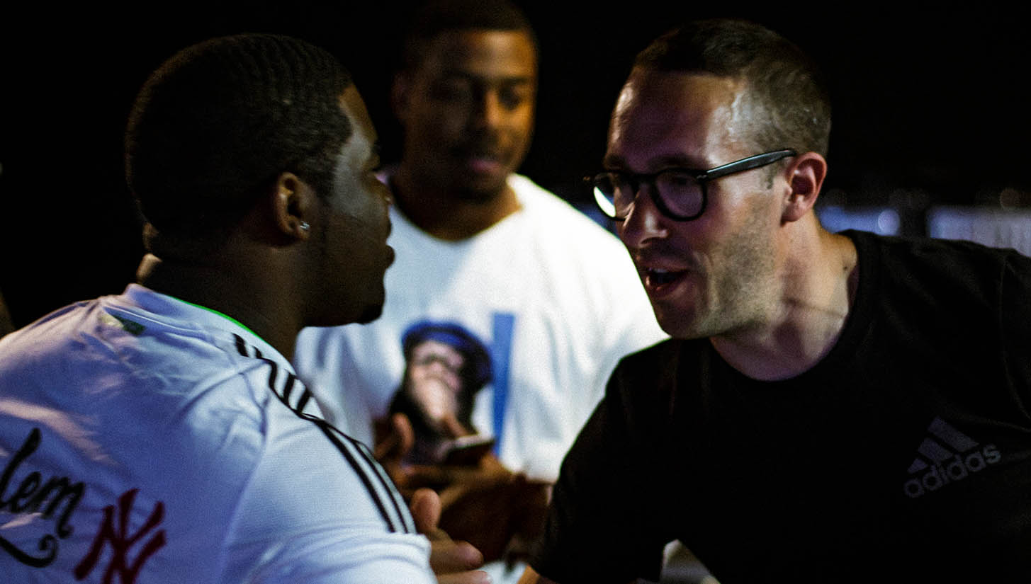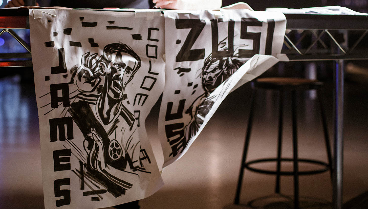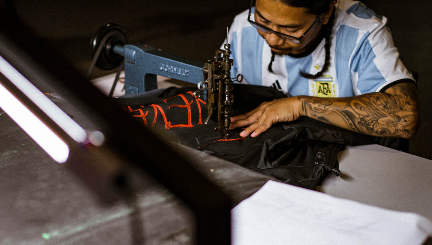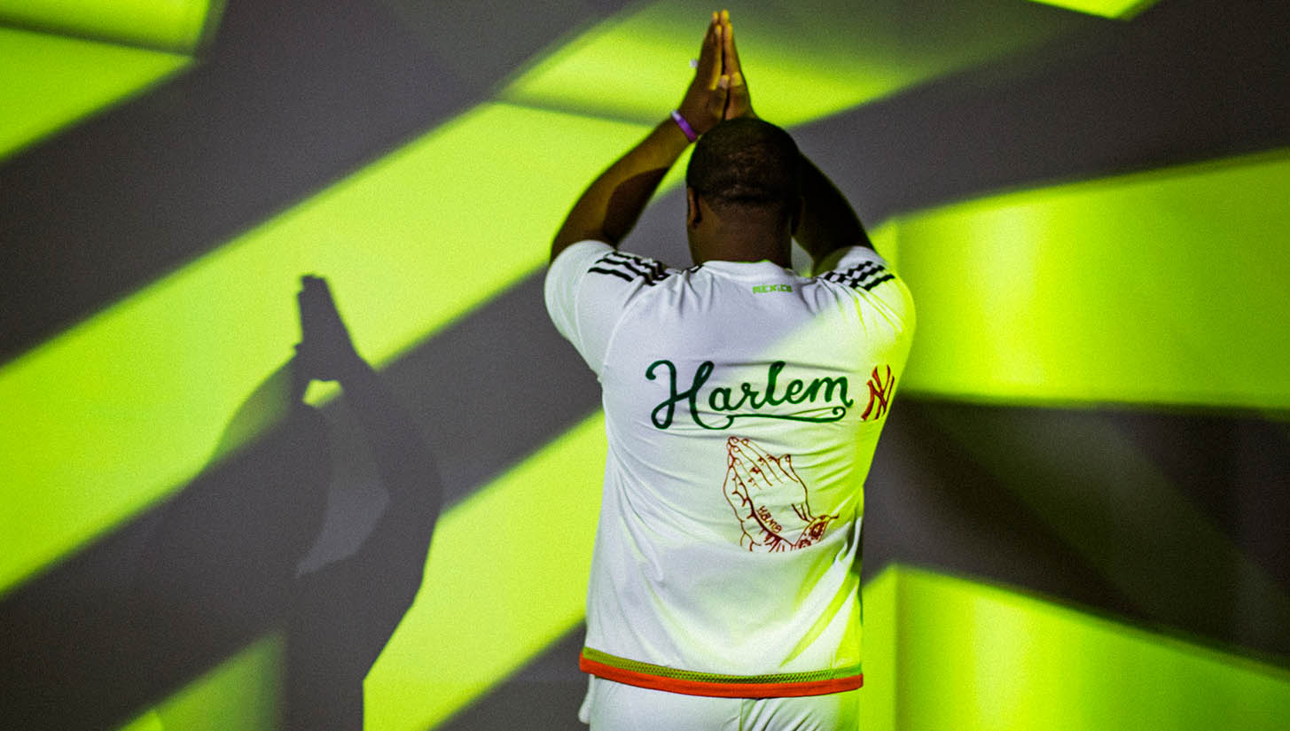 Dropping into the space over the weekend, Florencia Galarza along with hip-hop titan A$AP Ferg picked up some custom threads that were created then and there. Designers on hand, this collaborative process shows what can be done with a football shirt. Football is the platform, but music, art and design inspire much more cross-genre thinking from those donning the Three Stripes.