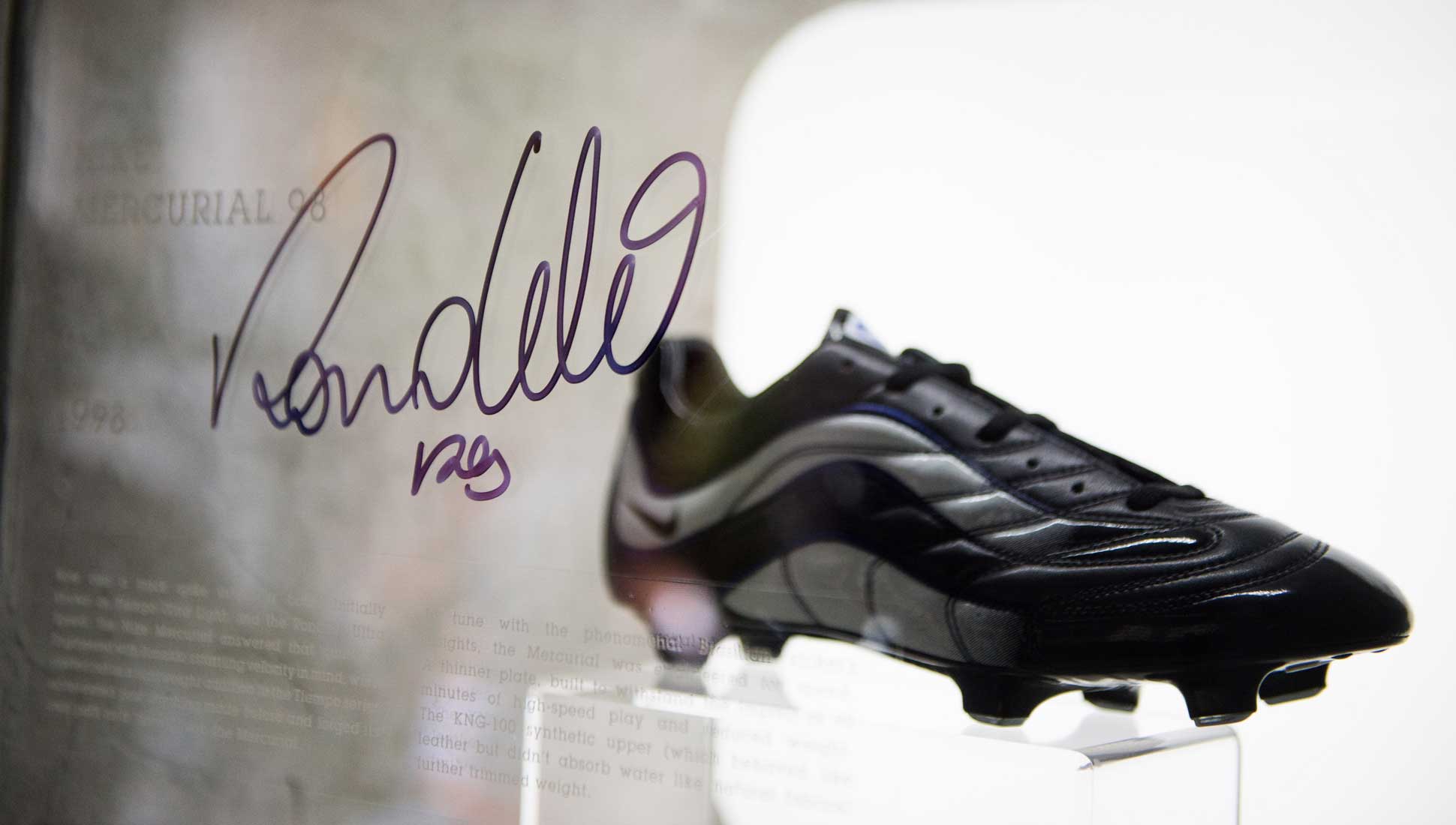 With the football world descending on Milan this past weekend for the Champions League final, Nike put on their own show in celebration of the brand’s history of speed and the new Mercurial Superfly V. In giving us a tour through Mercurial heaven, Nike dusted off some gems past and present, creating a wall to wall timeline of the boots 18-year history. On hand to tell the story of the Mercurial was Max Blau, VP Nike Football Footwear, and Jeongwoo Lee, Nike Football Footwear Design Lead.