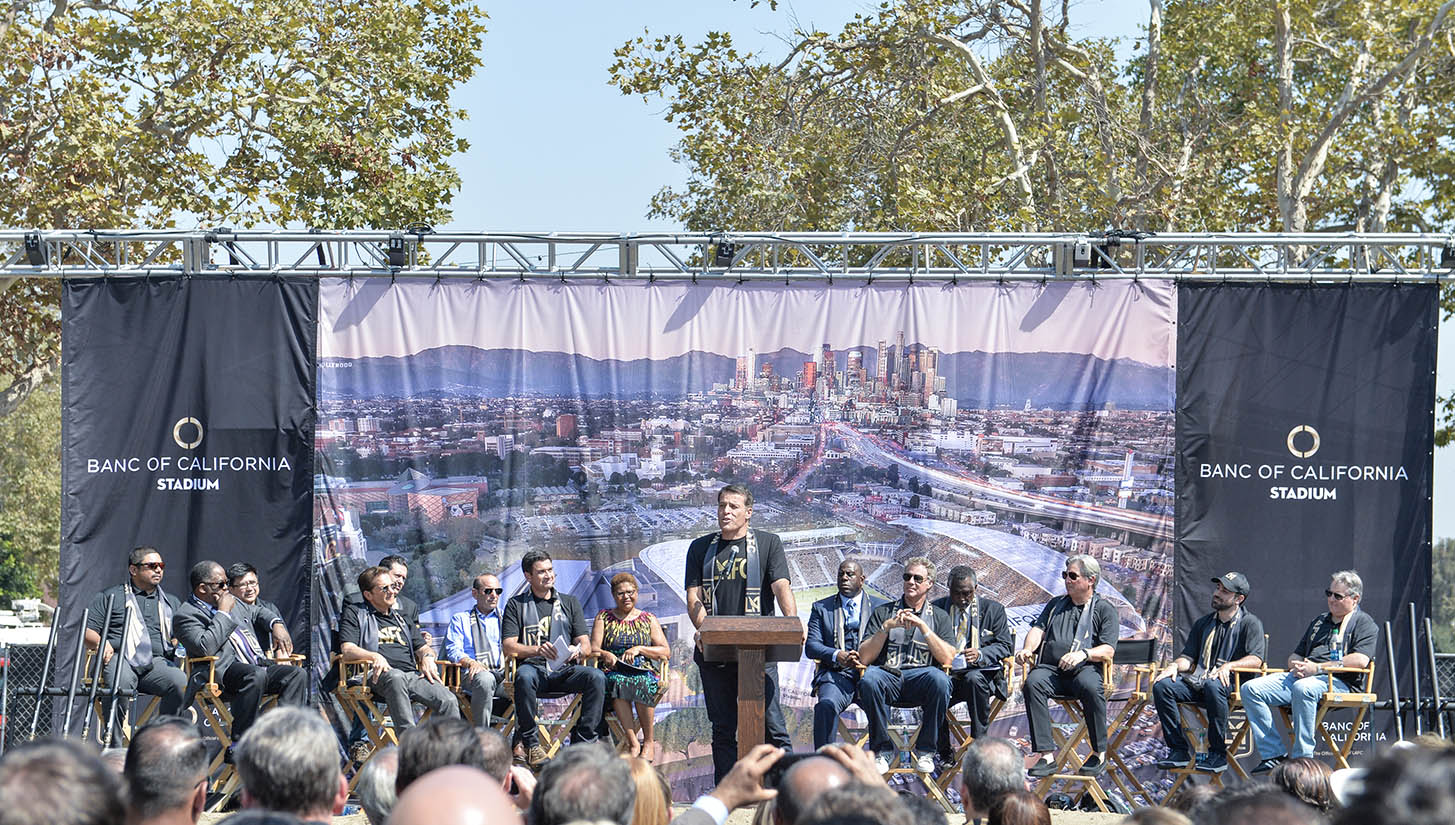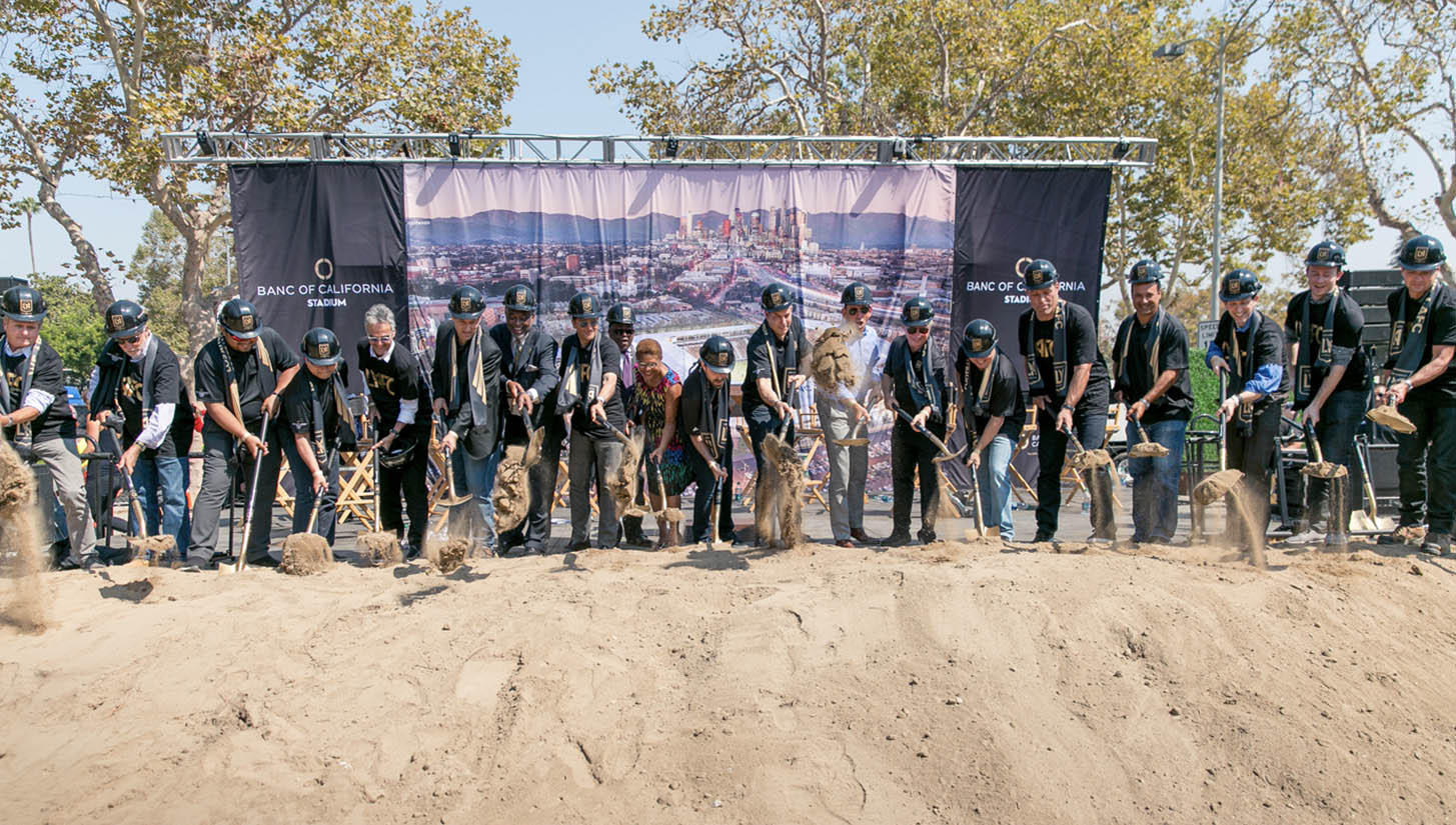 A brick not yet laid but the ground very much broken. LAFC marked the beginning of the next chapter in their youthful existence yesterday as they gathered fans and stakeholders to celebrate what will be the 'Banc of California Stadium'.