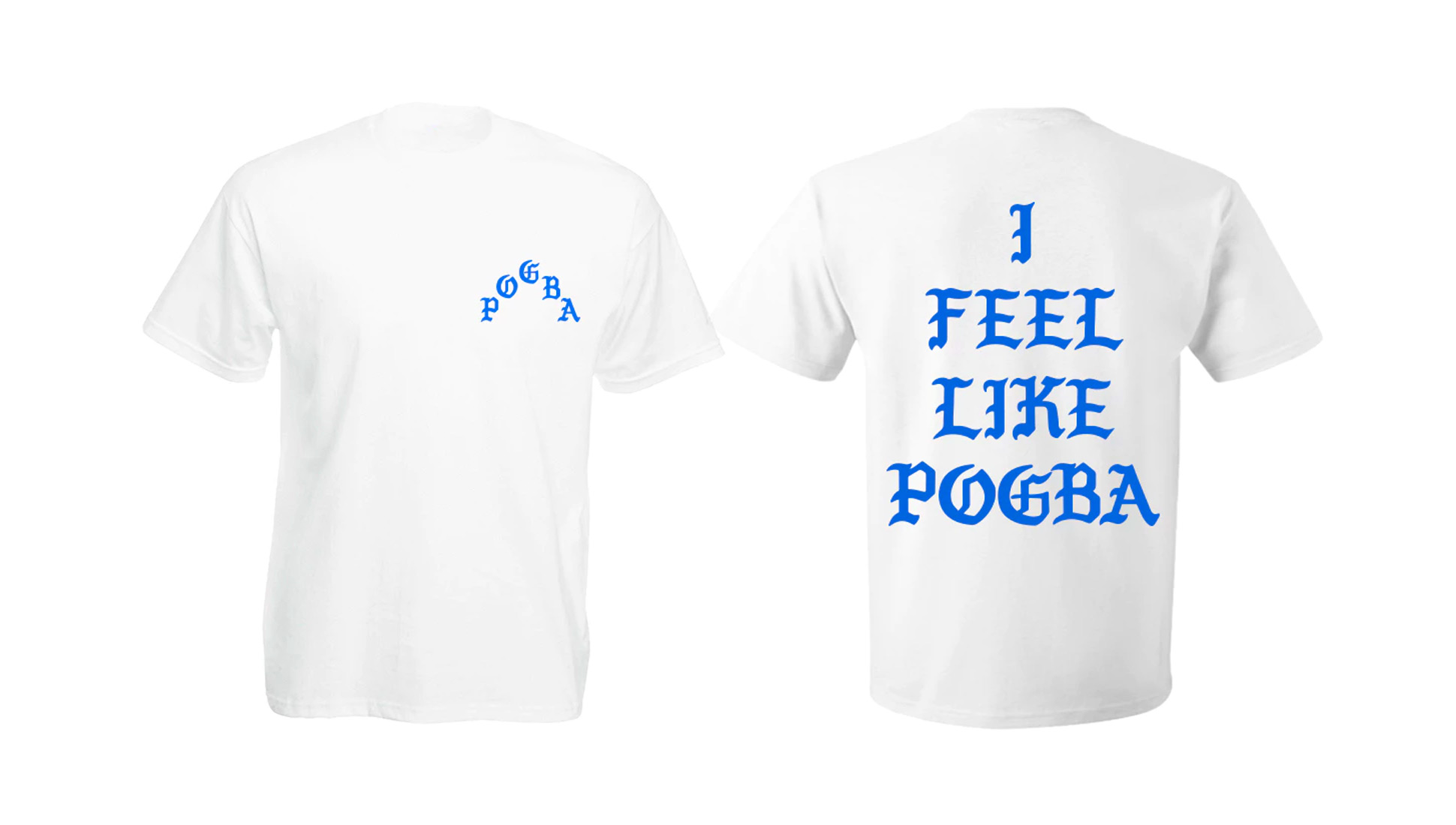 The confluence between hip-hop and its favourite footballer is illustrated neatly by the work of Will Hutchins, who created T-shirts with “Life of Pogba” and “I feel like Pogba” in the graphic style of Kanye West’s merch for his latest album Life Of Pablo. Hutchins was variously inspired by the way pop stars (and fashion brands such as Vetements) appropriate logos for commercial purposes, the then-upcoming Euros being hosted in France and the fact that “Pogba”, you know, sounds a bit like “Pablo”. “Hip-hop was embracing football,” he says. “There was a trend of rappers wearing football shirts.”