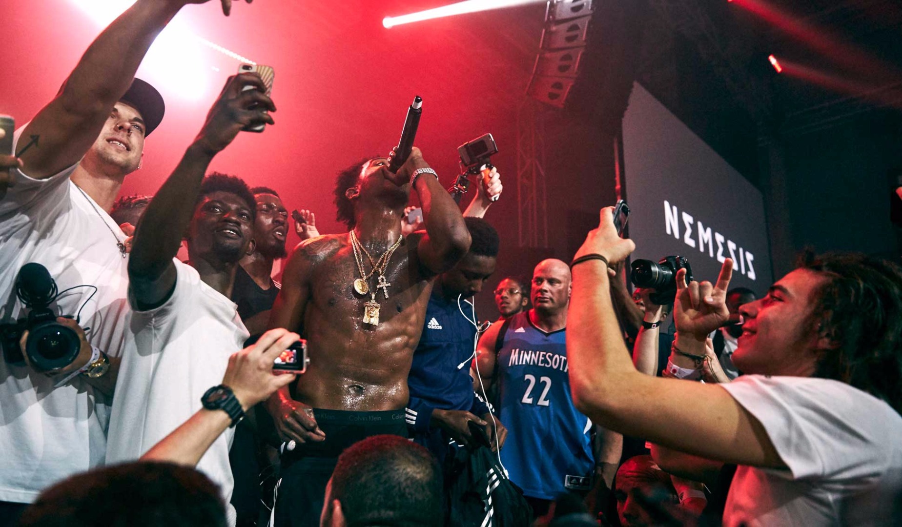 On a night of electric pace and confident strides adidas matched the hype and unpredictable Nemeziz nature with a pulsating party at the Printworks. Any party with European silverware and American rap representation is worth staying for one more round in our book. Kicking things off with Manchester United duo Ander Herrera and Jesse Lingard linking up on stage to celebrate Europa League success, it was a night licked in style.