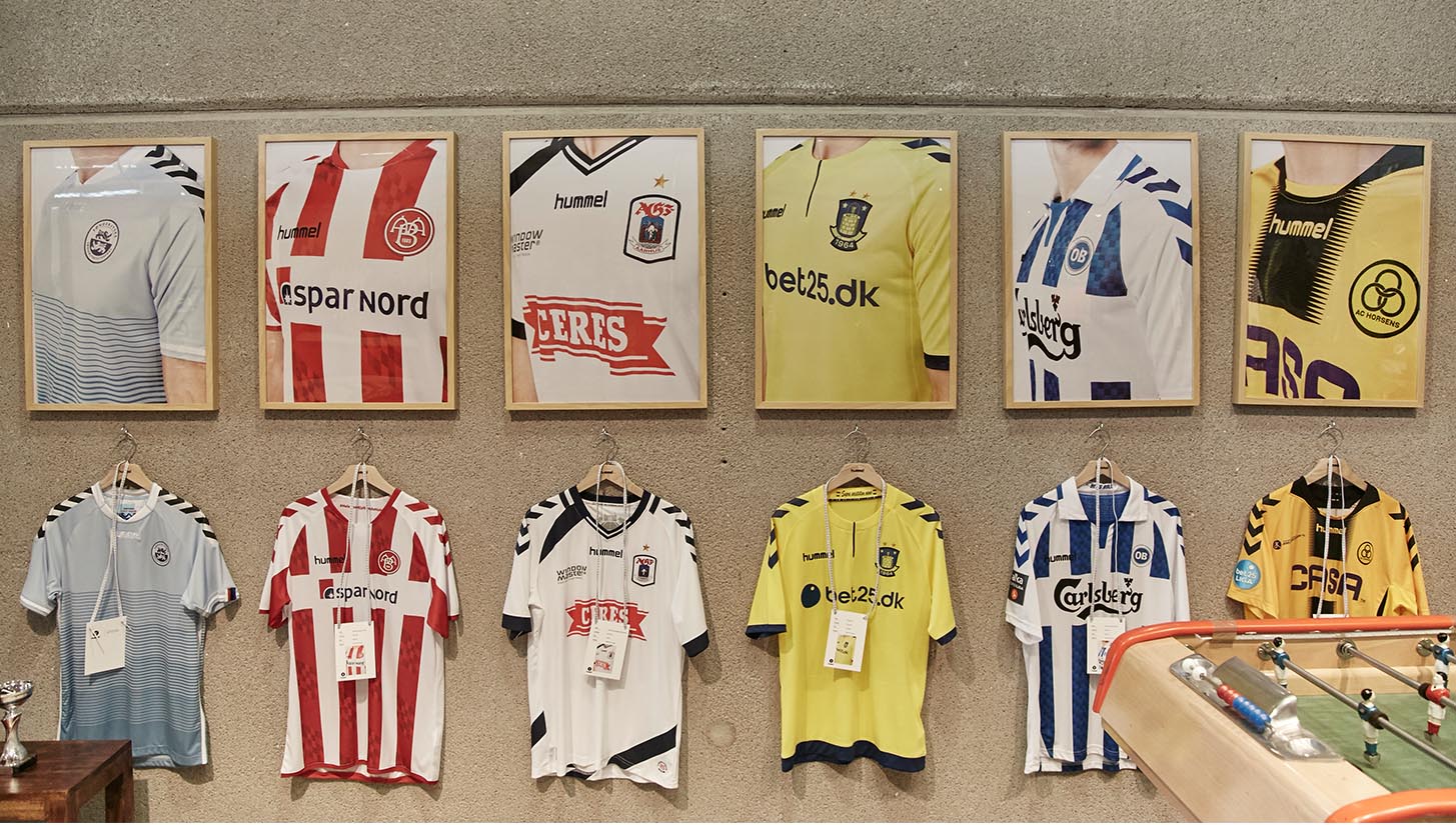 An office space that overlooks the ocean, that's the brick and mortar. Archived however are shirts upon boots of sporting history. Famous title winning Danish sides are coupled with rock and roll tennis shapes. It's a 90s rave get up of a brand that dances with contemporary moves. From Southampton to Falkirk with Real Madrid in between, this is a brand with style as well as substance as the images above show. The more you look, the more you discover and the more the character blossoms. Rock and roll, just as we like it.