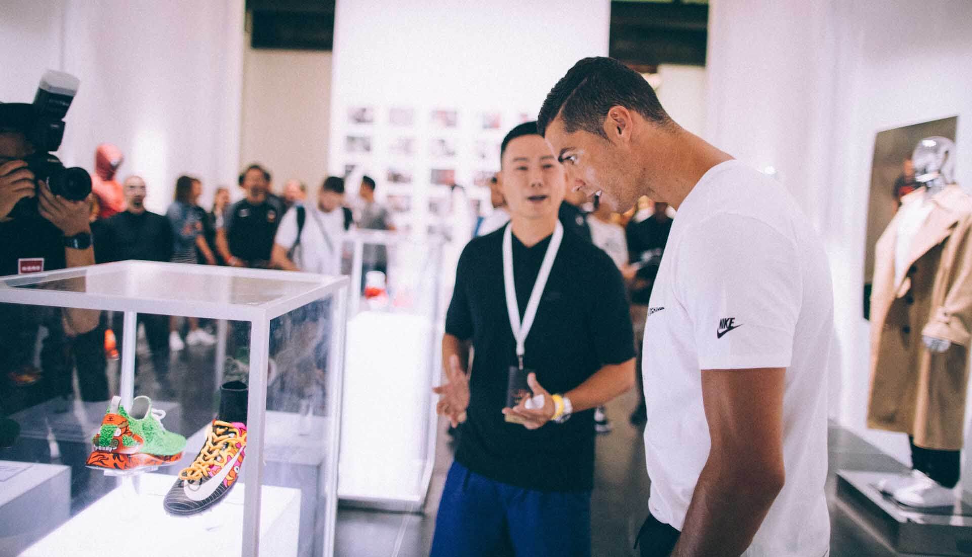 Lacing up in signature style, Ronaldo surprised players at the Nike League Finals before heading to the Nike Mercurial genealogy at House of Brilliance in the Chinese capital. The next stop was a visit to an art exhibition inspired by football culture in Beijing's 798 Art District where Ronaldo was presented with custom Nike Mercurial Superfly designs ahead of returning the favour by awarding the MVP's of the Nike League with limited-edition CR7 Mercurial Campeões boots.