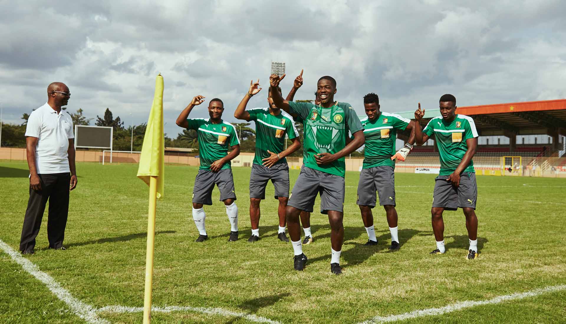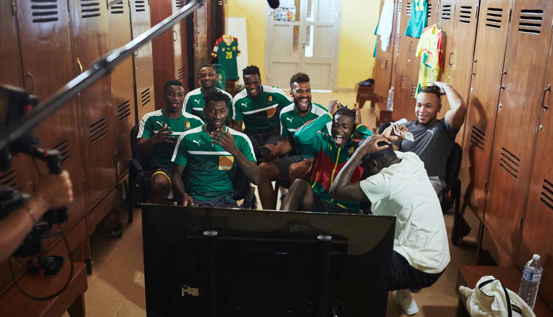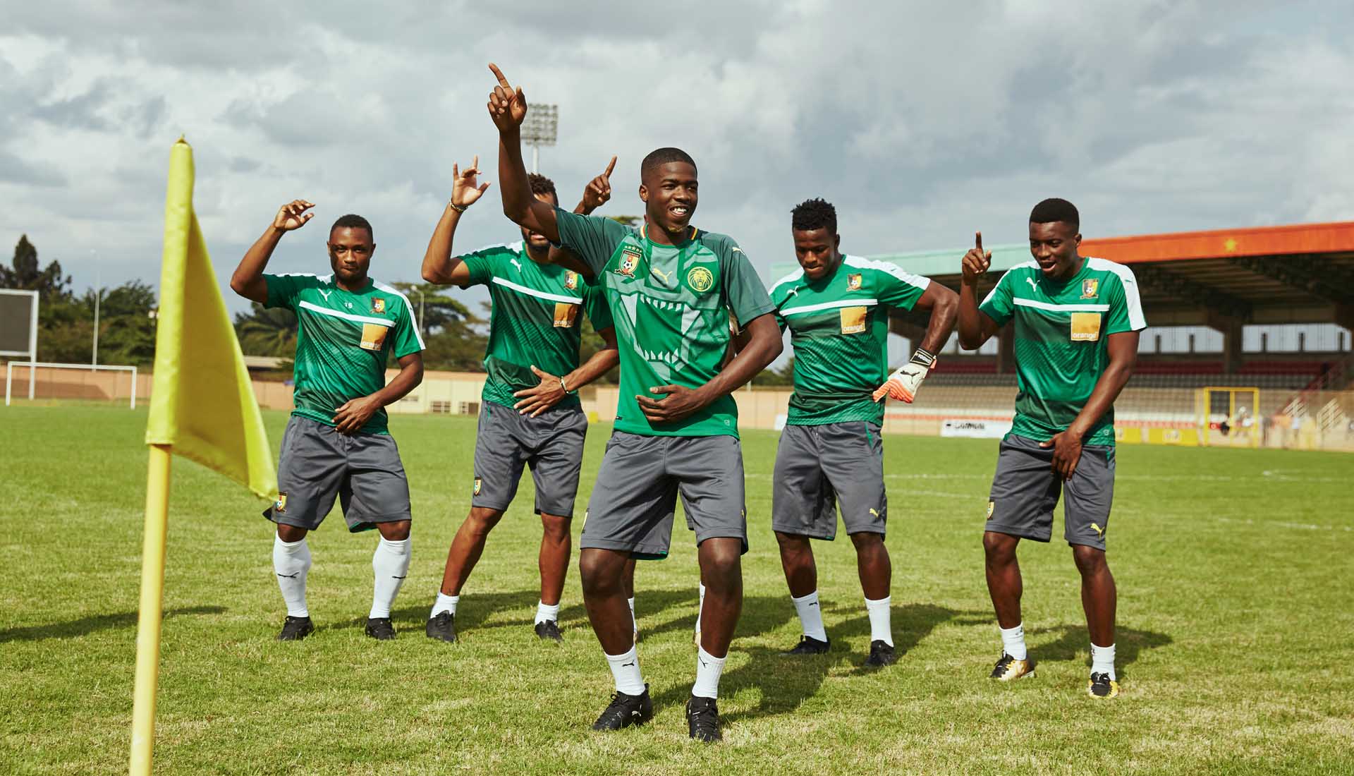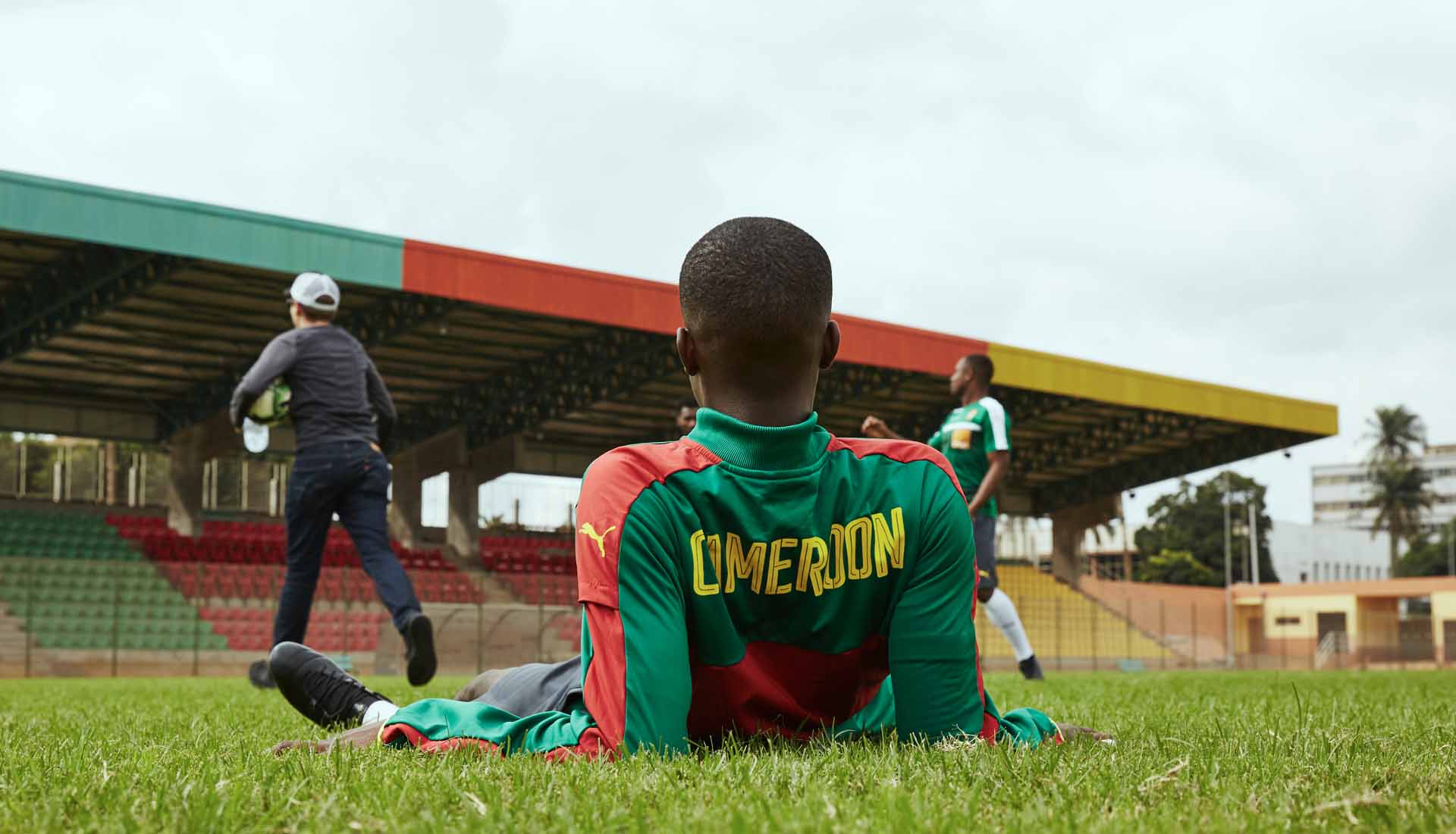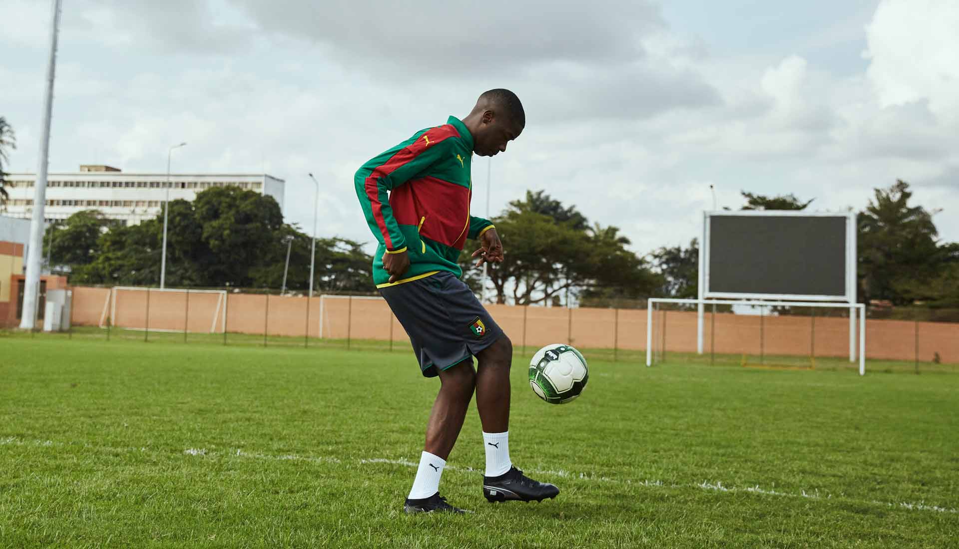 Afro-trap artist MHD and African football legend Roger Milla join up with the Cameroon squad to launch the new home shirt, celebrating the 20th year of their partnership with PUMA. Inspired by the past and looking ahead to creating new chapters of national pride for the Indomitable Lions.