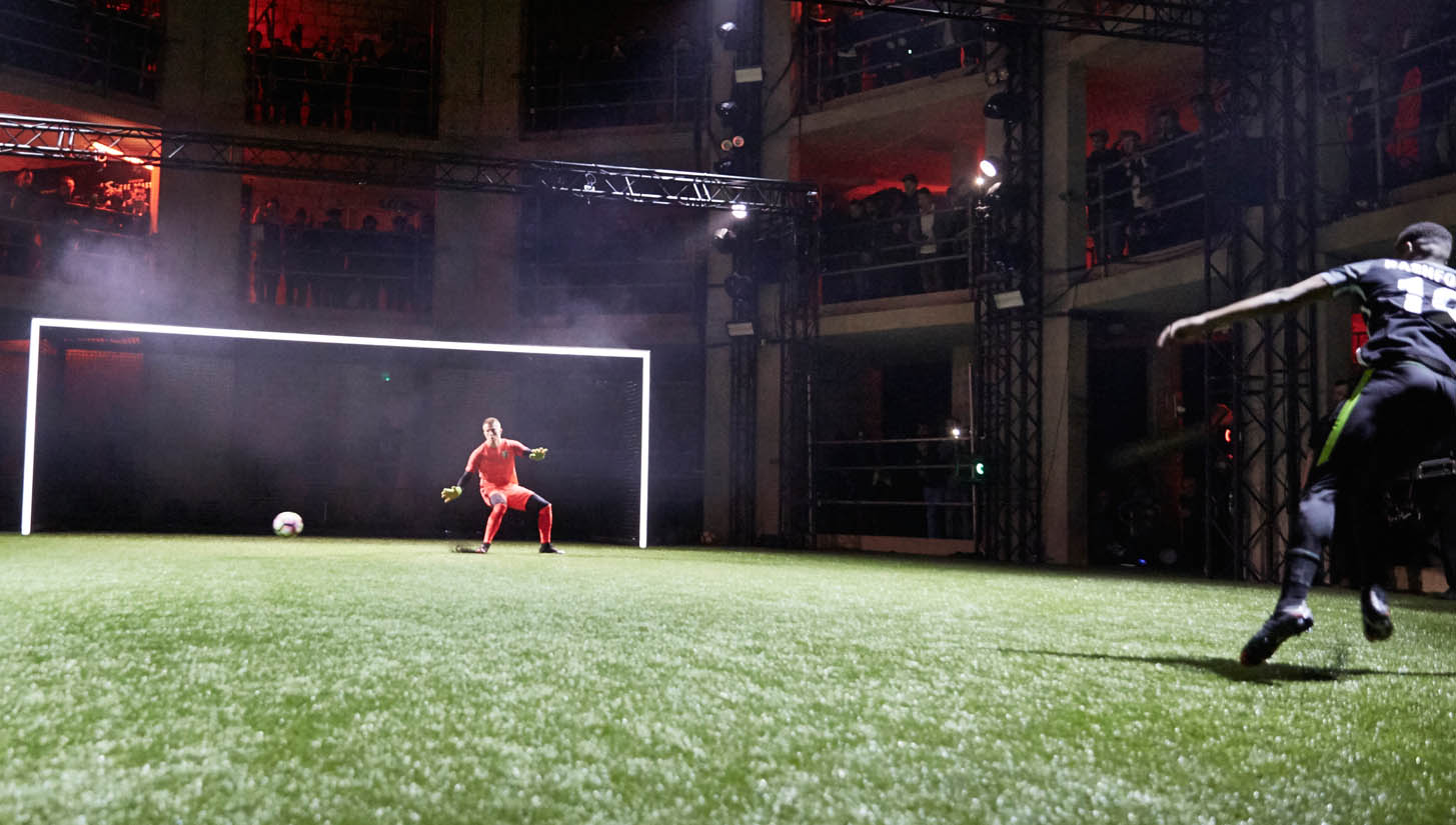 The scale of the event was nothing short of supersonic and as the players rattled through their shots on goal, judges looked on (Ian Wright, Didier Drogba, AJ Tracey and Santan Dave) as well as throwing in quick verbal whips of their own. An event with an underlining competitive edge, it was a fresh way to showcase both player and product. Hitting the net might have been the aim but head over heels showboating was very much the game with everyone from The Ox to Auba wanting to out do one another and be crowned champ.