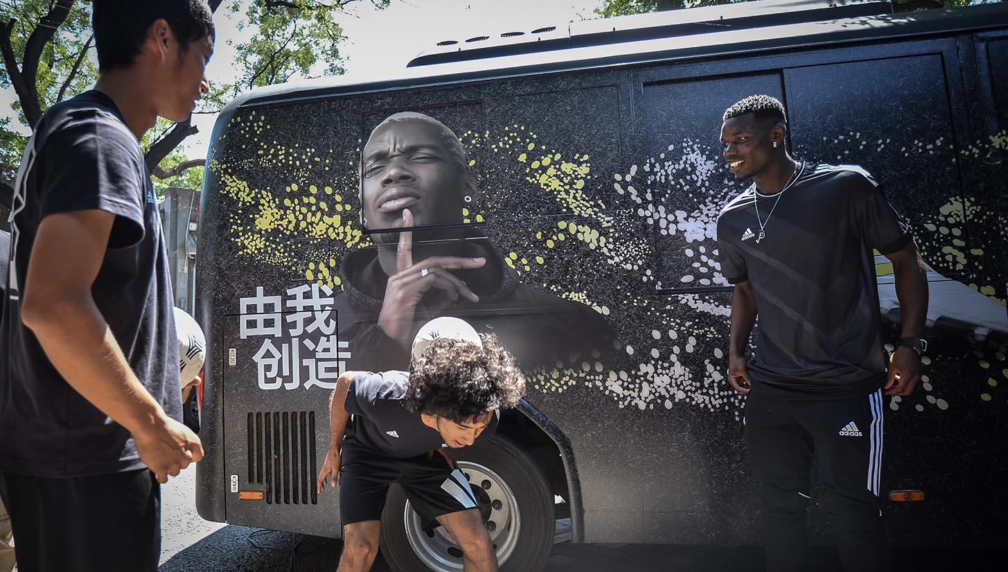 In a new theme of singular-player pre-season tours adidas showcased Pogba around China to take in sights, build-up his profile, dab in various tourist spots and just generally have a good time before returning for pre-season. Chauffeured around China on his personal adidas tour bus complete with portable barbers to keep that trim fresh, Pogba's natural thirst for inquisitive adventure led him to mix with fans, getting the ball out at every opportunity.