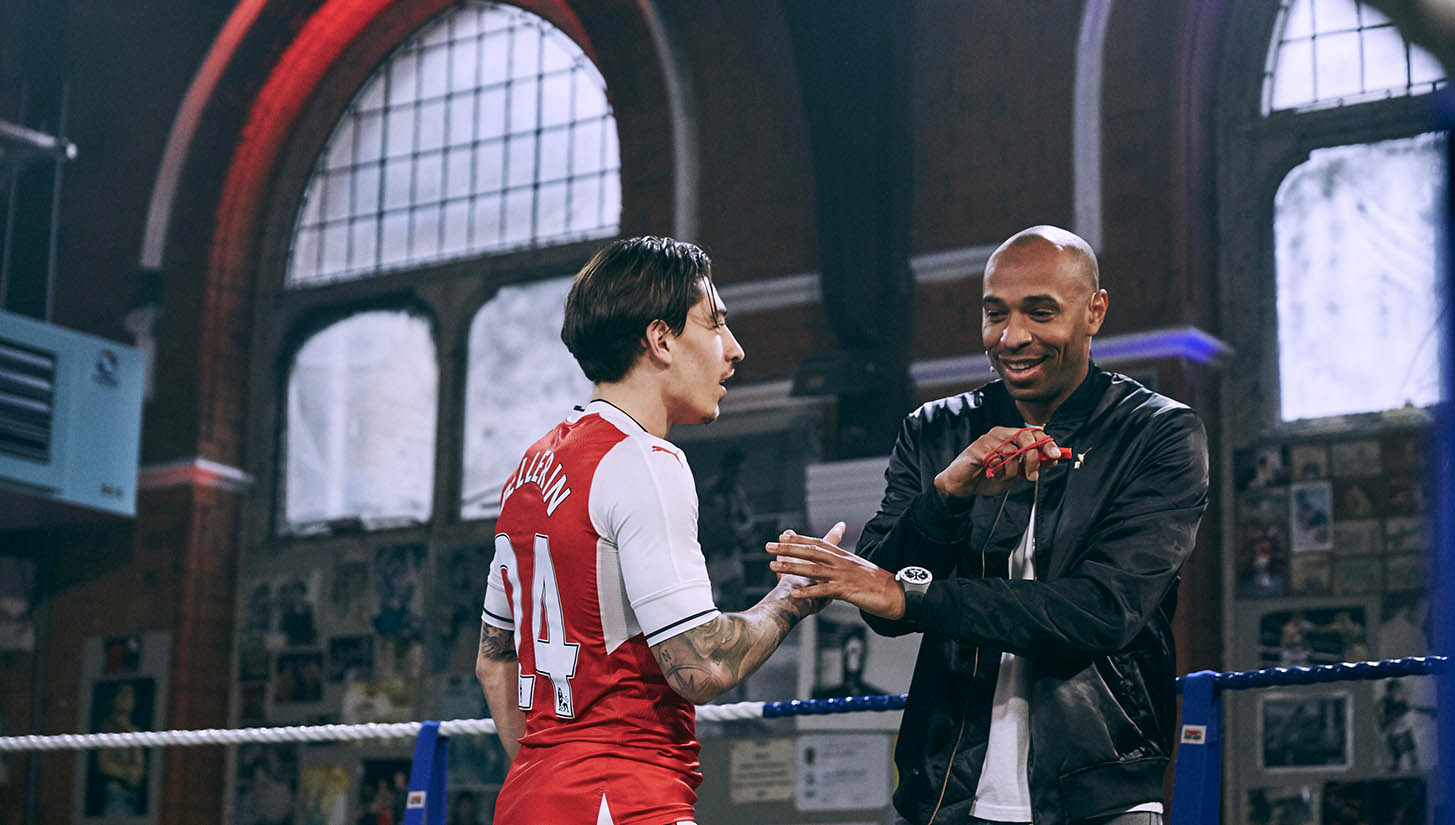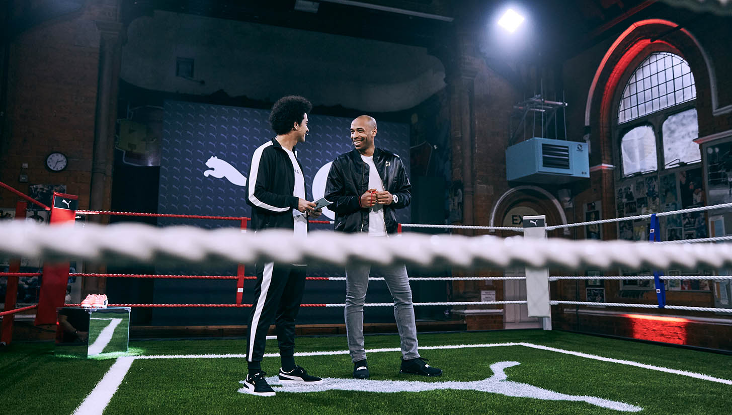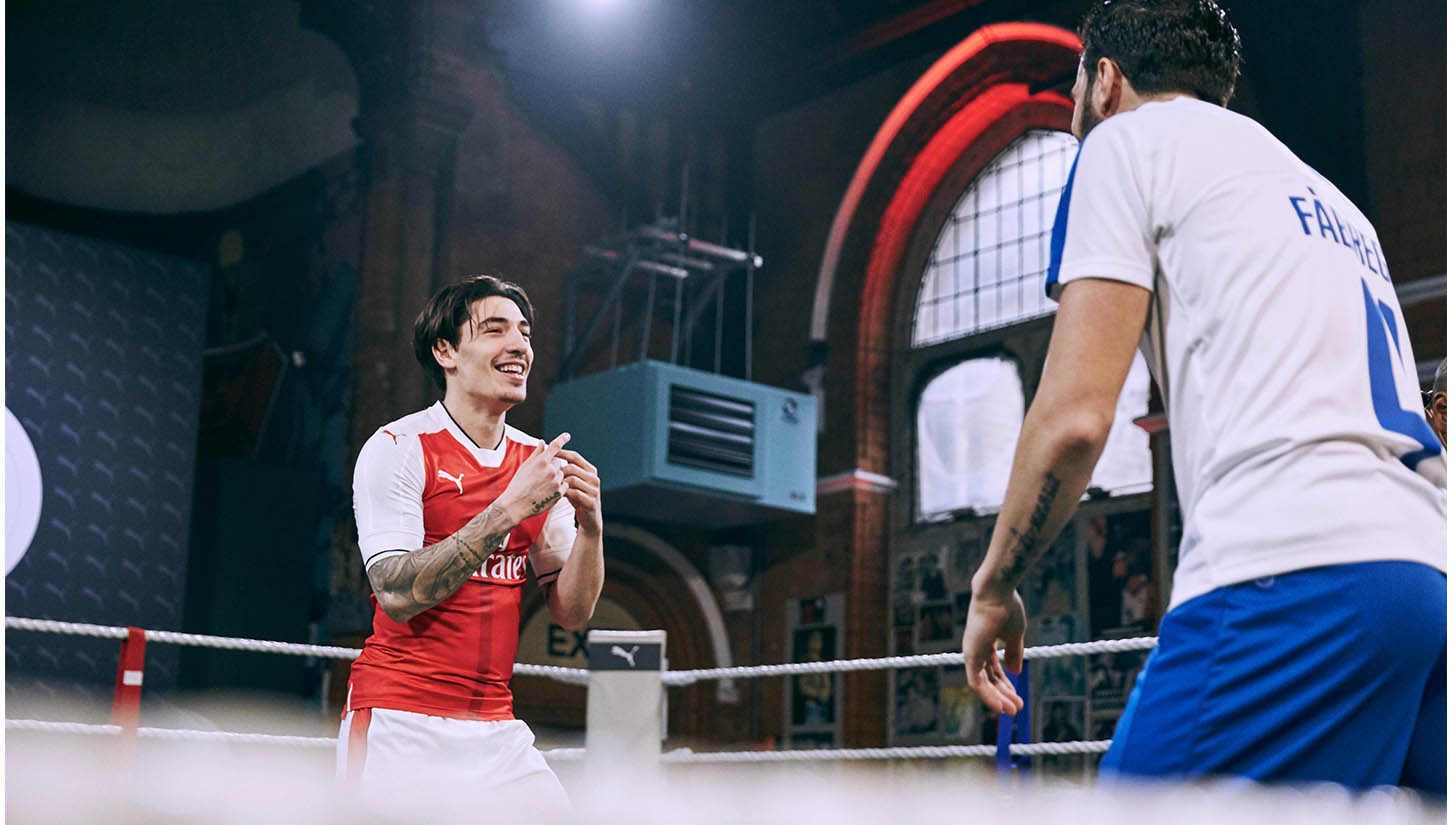 As a lunchtime kick off looms, Chelsea and Arsenal are preparing to go to battle and Stamford Bridge this weekend. A tenacious rivalry that sees two sides fight it out for three crucial points and the bragging rights over their claim of London, this goes further than any regular fixture. Turning up the heat in anticipation, PUMA took to one of London's meanest boxing clubs, dressed it in their style, re-turfed the ring and brought Hector Bellerin and Cesc Fabregas to go toe-to-toe. Looking on, the legendary figure of Thierry Henry played on the shoulder as these two took to the stage to go through round one as they each laced up their "Derby Fever" boots ahead of this weekends on pitch battle.