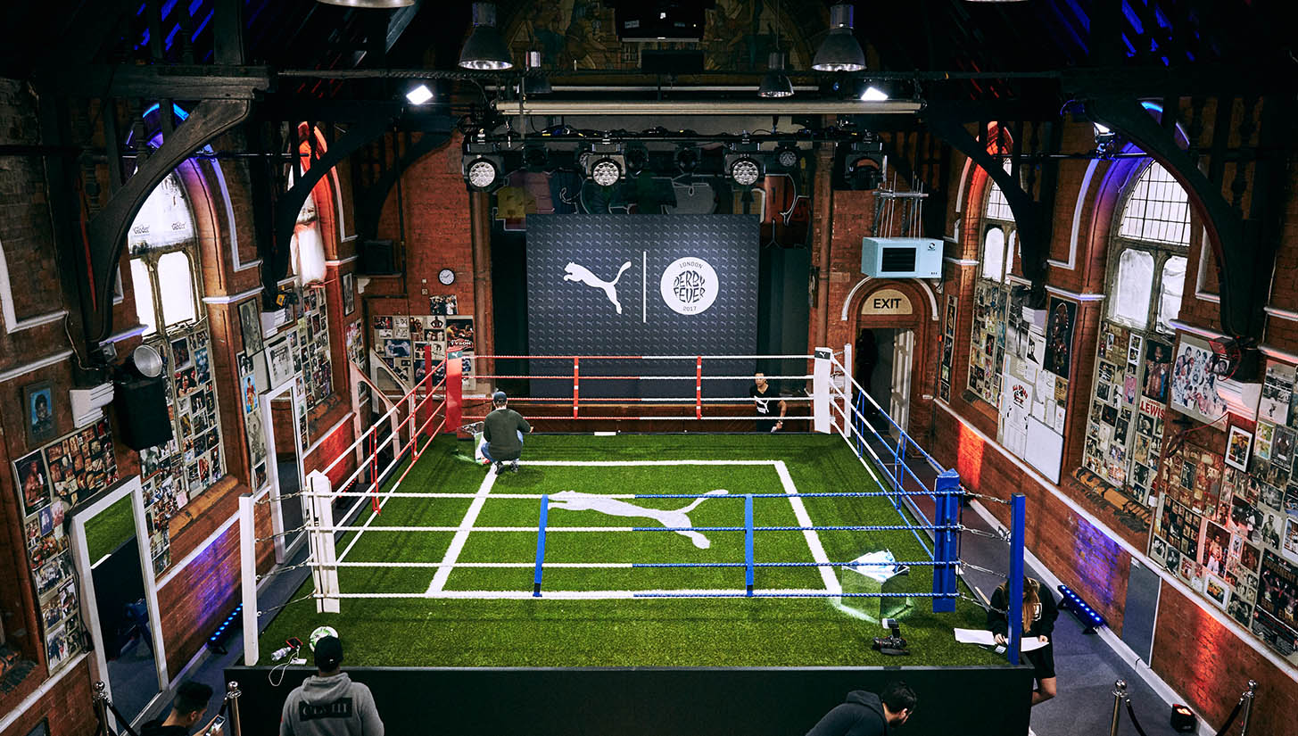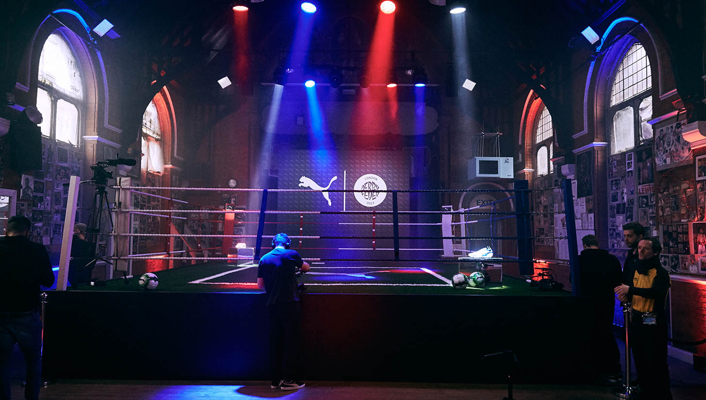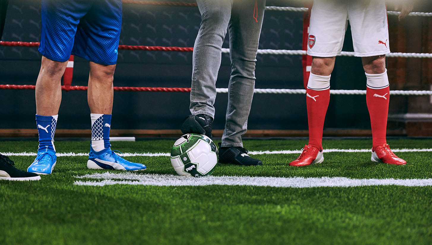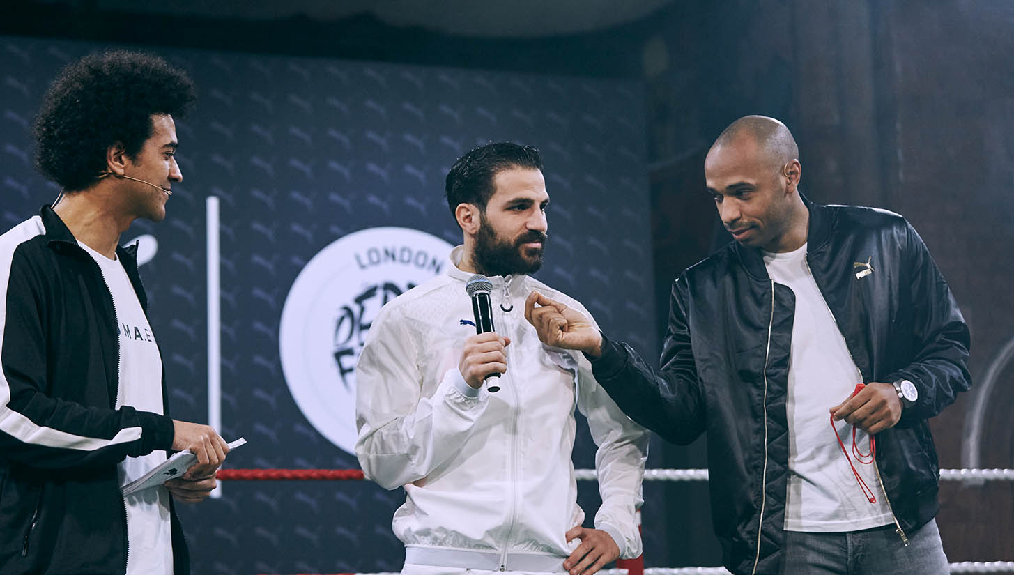 As a lunchtime kick off looms, Chelsea and Arsenal are preparing to go to battle and Stamford Bridge this weekend. A tenacious rivalry that sees two sides fight it out for three crucial points and the bragging rights over their claim of London, this goes further than any regular fixture. Turning up the heat in anticipation, PUMA took to one of London's meanest boxing clubs, dressed it in their style, re-turfed the ring and brought Hector Bellerin and Cesc Fabregas to go toe-to-toe. Looking on, the legendary figure of Thierry Henry played on the shoulder as these two took to the stage to go through round one as they each laced up their "Derby Fever" boots ahead of this weekends on pitch battle.