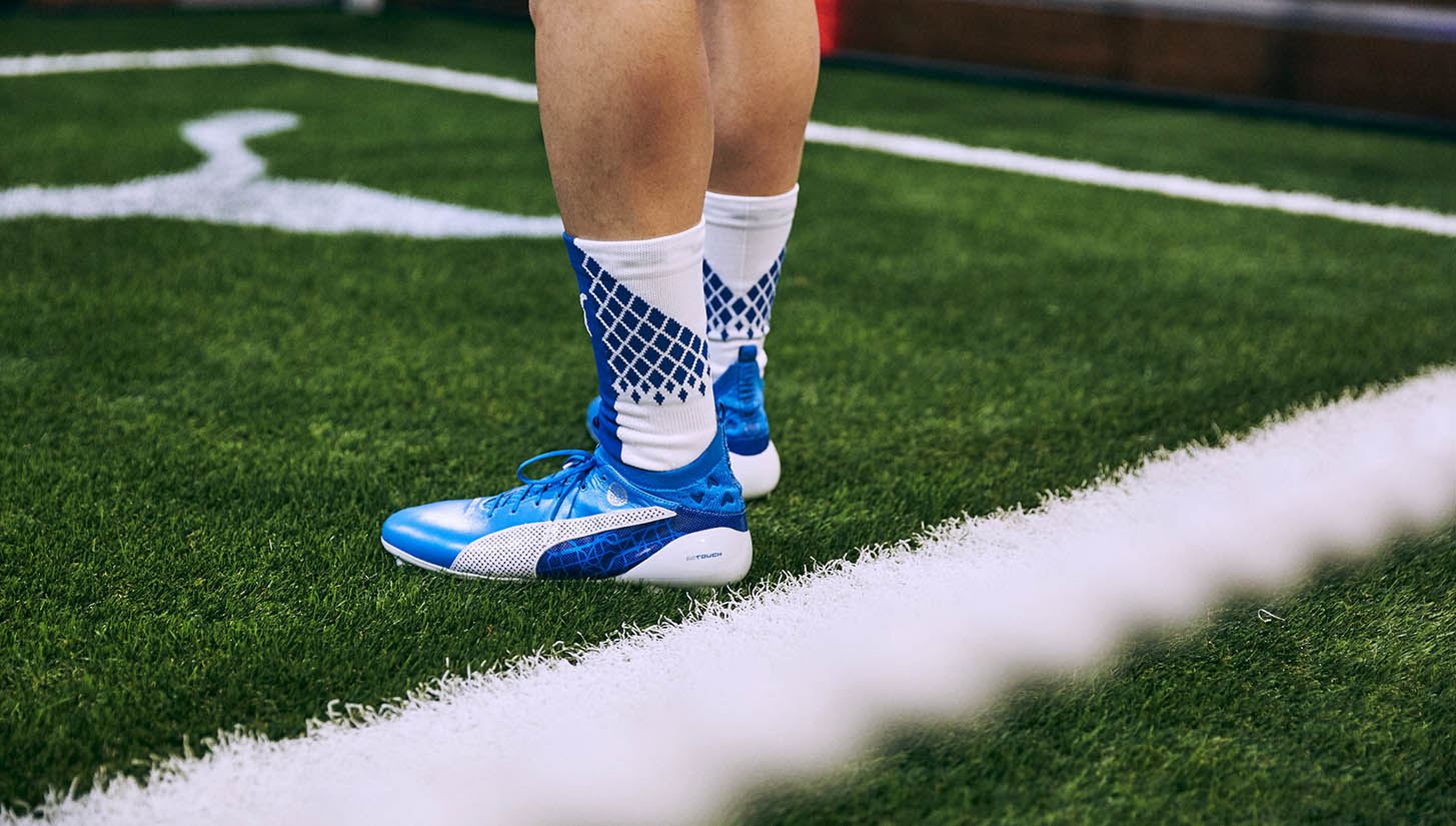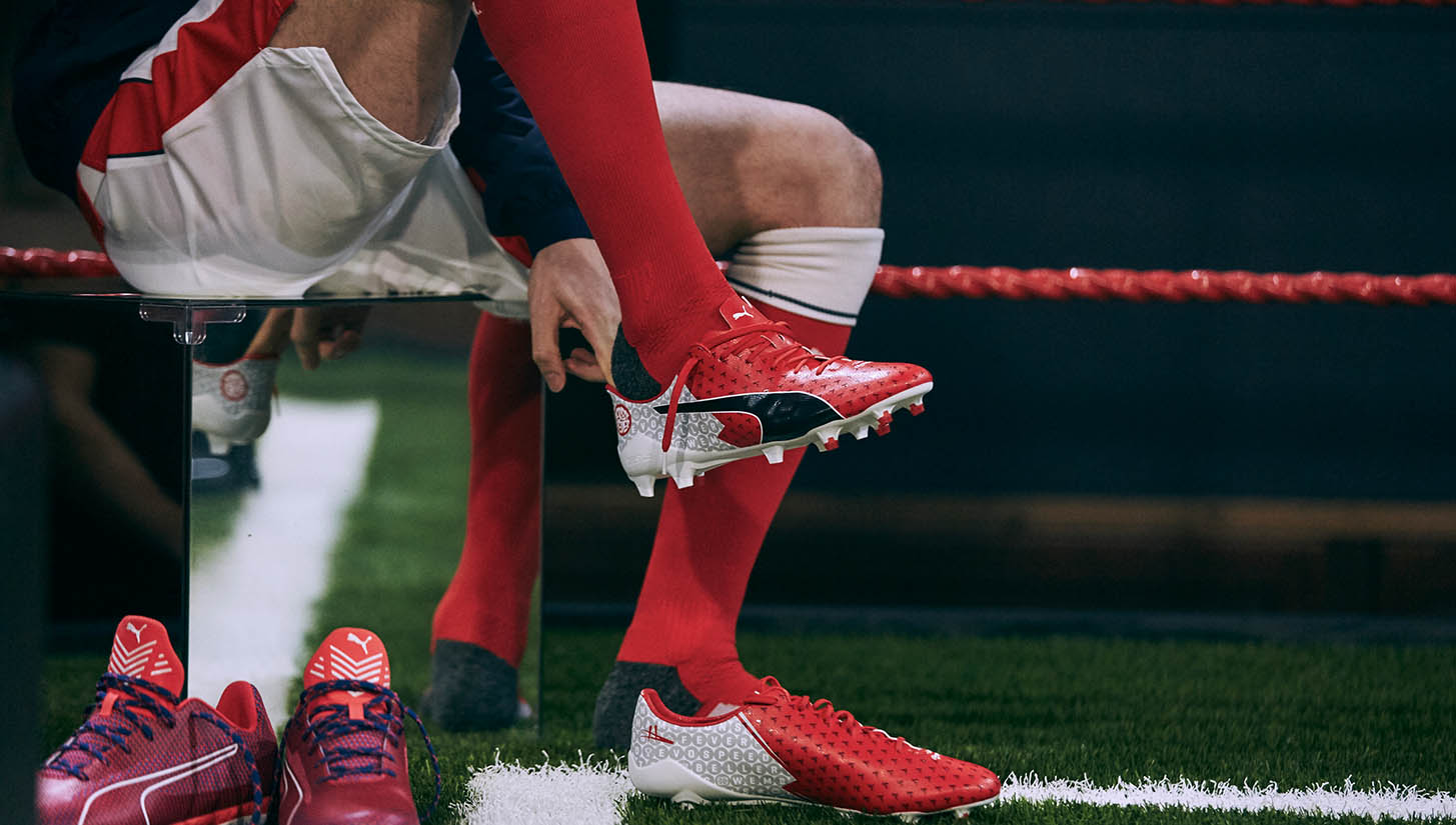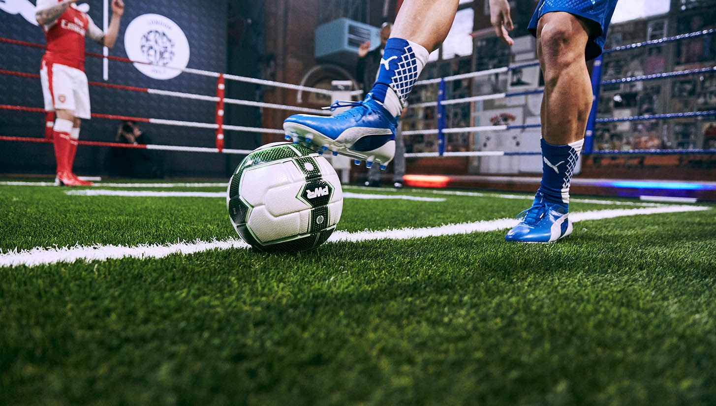 Fire on the feet, PUMA have given each players boots a fresh lick of paint especially for the forthcoming game. Dropping the "Derby Fever" collection, it sees Hector Bellerin suit up in a special "Bellerin" edition pair of evoSPEED SL.S that land in a "High Risk Red" while Fabregas will lace up a bespoke "French Blue" pair of "Cesc" evoTOUCH Pro. Both players slipped into the boots for this event as they took each other on in a two-touch challenge in front of a football thirsty crowd.
