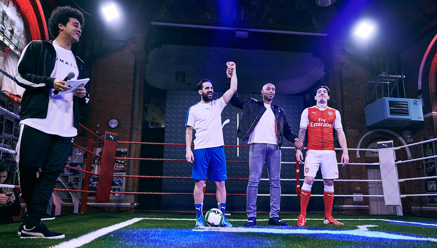Embracing the rivalry and adding some extra flavour to a fixture that is already simmering way beyond any peri-peri put down, PUMA took to London yesterday to host an event dedicated to "Derby Fever". With Bellerin taking on Fabregas and Henry ruling the ring, it's got the trash talk going.