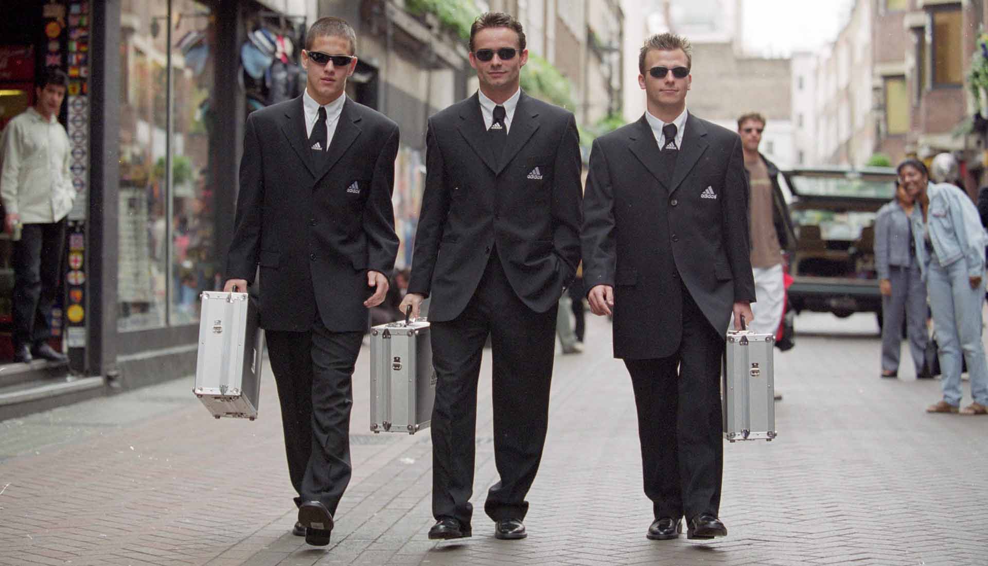 Bonus: Joe Cole, Marc Overmars and Jody Morris go budget-men-in-black in their dad's suits to launch the adidas Predator Precision in London. Monday 1st May 2000.