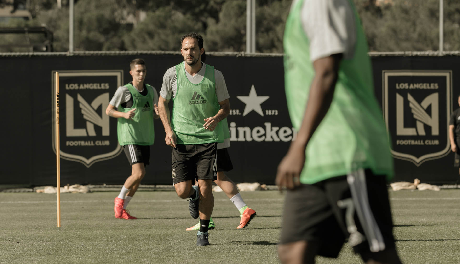 Day one in the sun and looking like an organised outfit already, the club have set up base at UCLA as Bob Bradley organises his squad in preparation for the 2018 MLS Season. This first training session comes almost three years after the club launched their crest and while behind the scenes they have been working flat out, momentum and excitement is now hitting a peak level. The Banc of California Stadium is rendering towards completion too and having recruited fresh young talent at the MLS Superdraft, the first training session ushers in the next wave in a new era for football in LA.