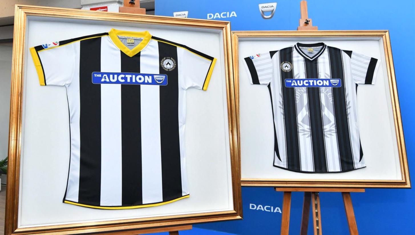 After seeking permission from the Italian FA, Udinese went ahead with the "Dacia The Auction" initiative which saw the main sponsor of the club (Dacia) supply each outfield player with a previous home kit design to wear and then auction off. Before the auction each shirt was tied to a charity or project led by a Udinese fan, with proceeds going to a variety of places.
