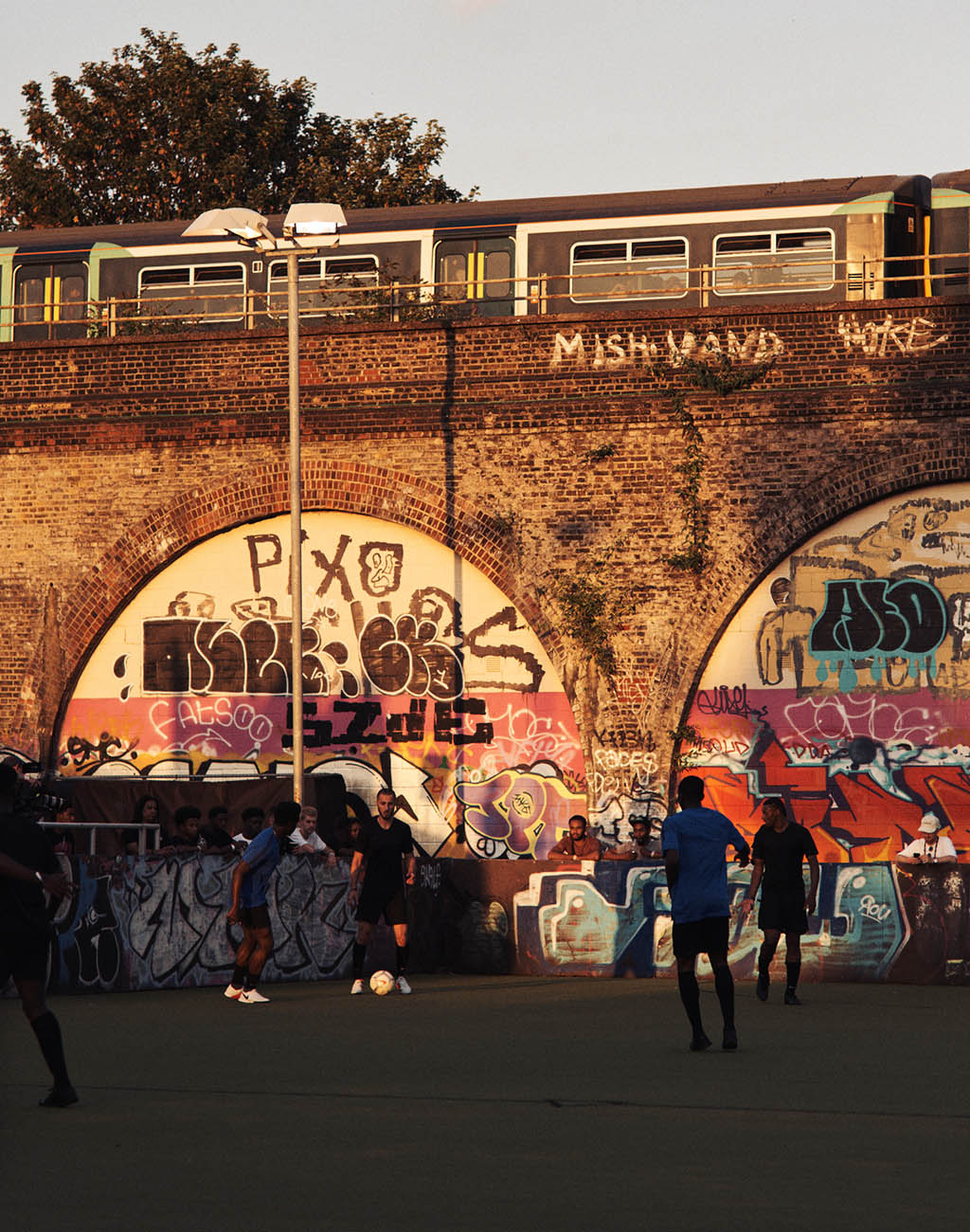 The culmination of a months worth of collaboration, each team was enlisted by Nike thanks to a combination of their style on the pitch and their influence on the local community. Not simply personalities in a borough, each captain is someone who actively gives back through coaching or mentoring so it was the final of a tournament that welcomes people with drive with a platform to achieve. A competitive edge running high, the caged courts, tower block views and tube backdrop made sure the setting was on point for the occasion. East v West v North v South, each quadrant had two teams representing their area in search for the Phantom win.