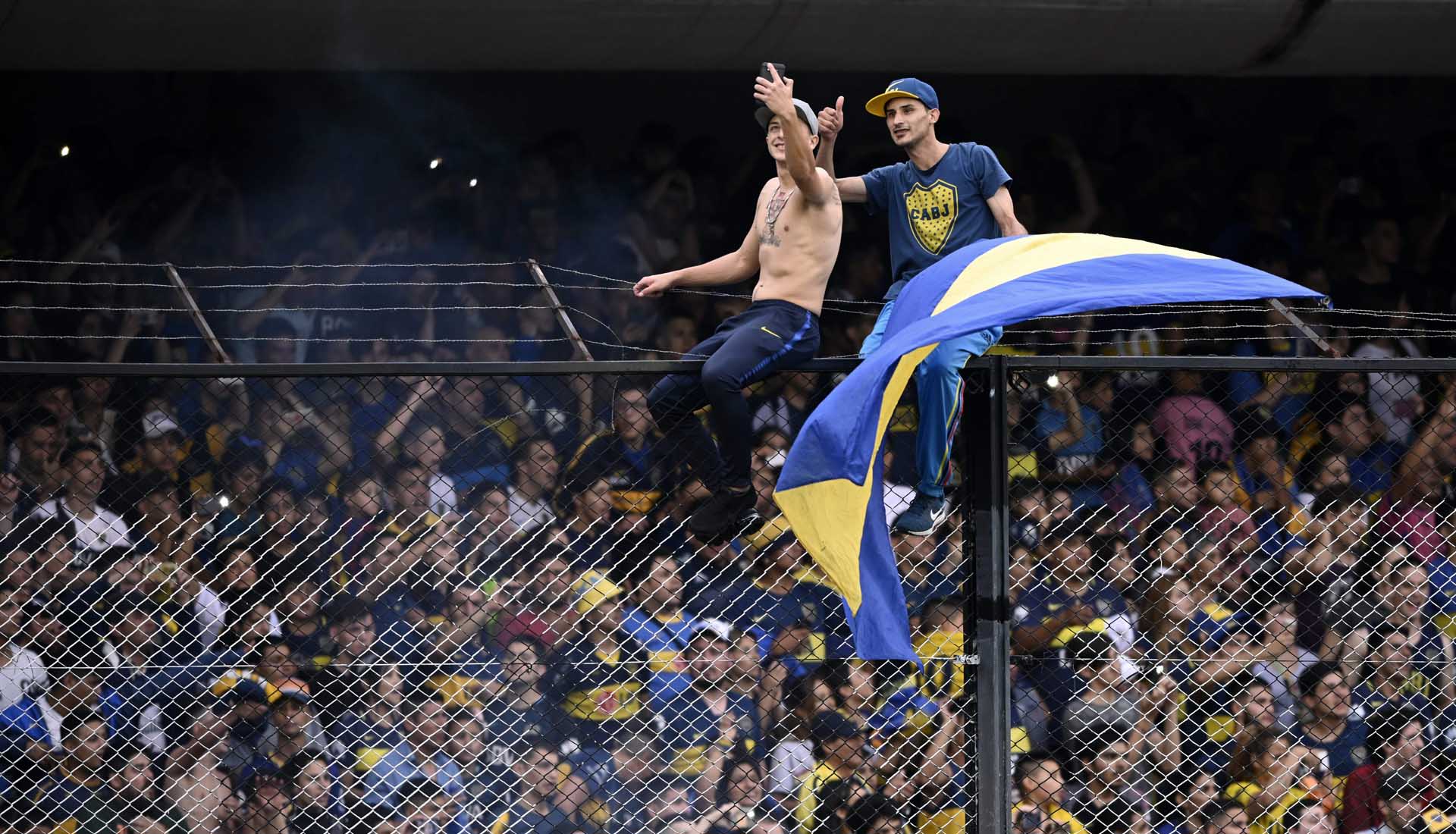 The tie is nicely poised at 2-2 after the two local sides met in the first leg at La Bombonera last Sunday. Tomorrow, they meet again across town, and Boca Juniors fans were keen to give their players one colossal send off by creating a cup final atmosphere in the open training session. People climbing barbed wire fences, risking their lives balancing on the walls of the top tiers, just to get a glimpse of one of their heroes run around a series of cones. Try telling us European football comes anywhere close to this.