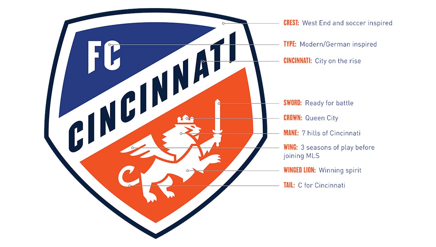 The new crest is steeped in symbolism, with the design meant to celebrate the city’s German heritage in a modern way. The lion’s crown pays homage to the “Queen City,” while the seven points of its mane are a nod to the seven hills of Cincinnati. The three-feathered wing represents the club’s three-year journey to MLS and, finally, its tail takes a distinct “c” shape.