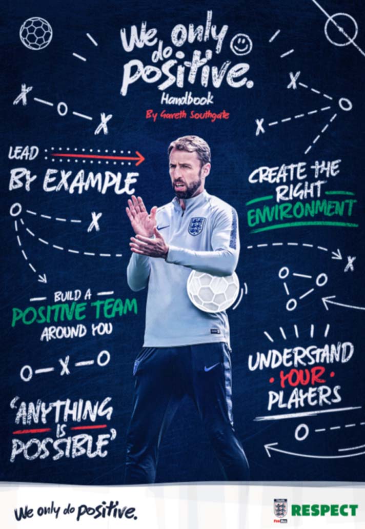 The release of the handbook comes from FA research that has shown that 90% of young players perform better with positive encouragement. Something Southgate is big on and has helped shape a positive aura around the current England squad. This insight has shaped the Respect campaign’s new mantra of ‘We Only Do Positive’, and this message has been built upon to create the ‘We Only Do Positive’ handbook