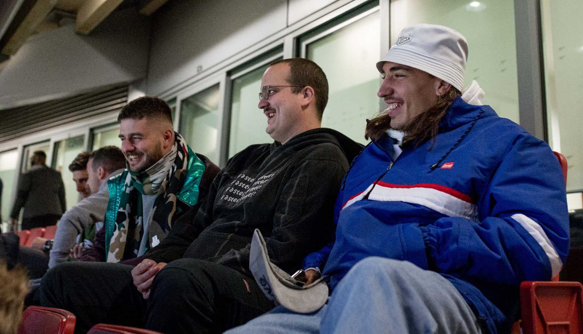 It's no secret that Bellerin is big into his style, and he's continuing to make friends within the fashion industry by mixing in streetwear and high-end fashion circles, especially in London. As the Gunners beat Blackpool 2-1 last night the injured Arsenal full back invited British designer and owner of self titled label, Liam Hodges, into the posh seats.
