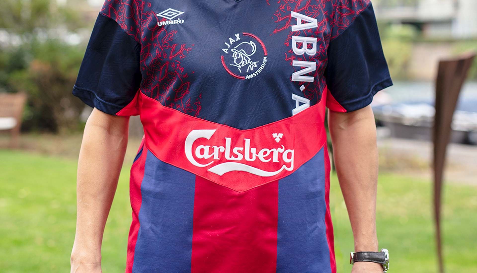 The shirt takes the upper of the Ajax shirt, the club with which Litmanen enjoyed the most success, the midriff of Liverpool and 'Carlsberg' sponsor, and the lower section from Barcelona.