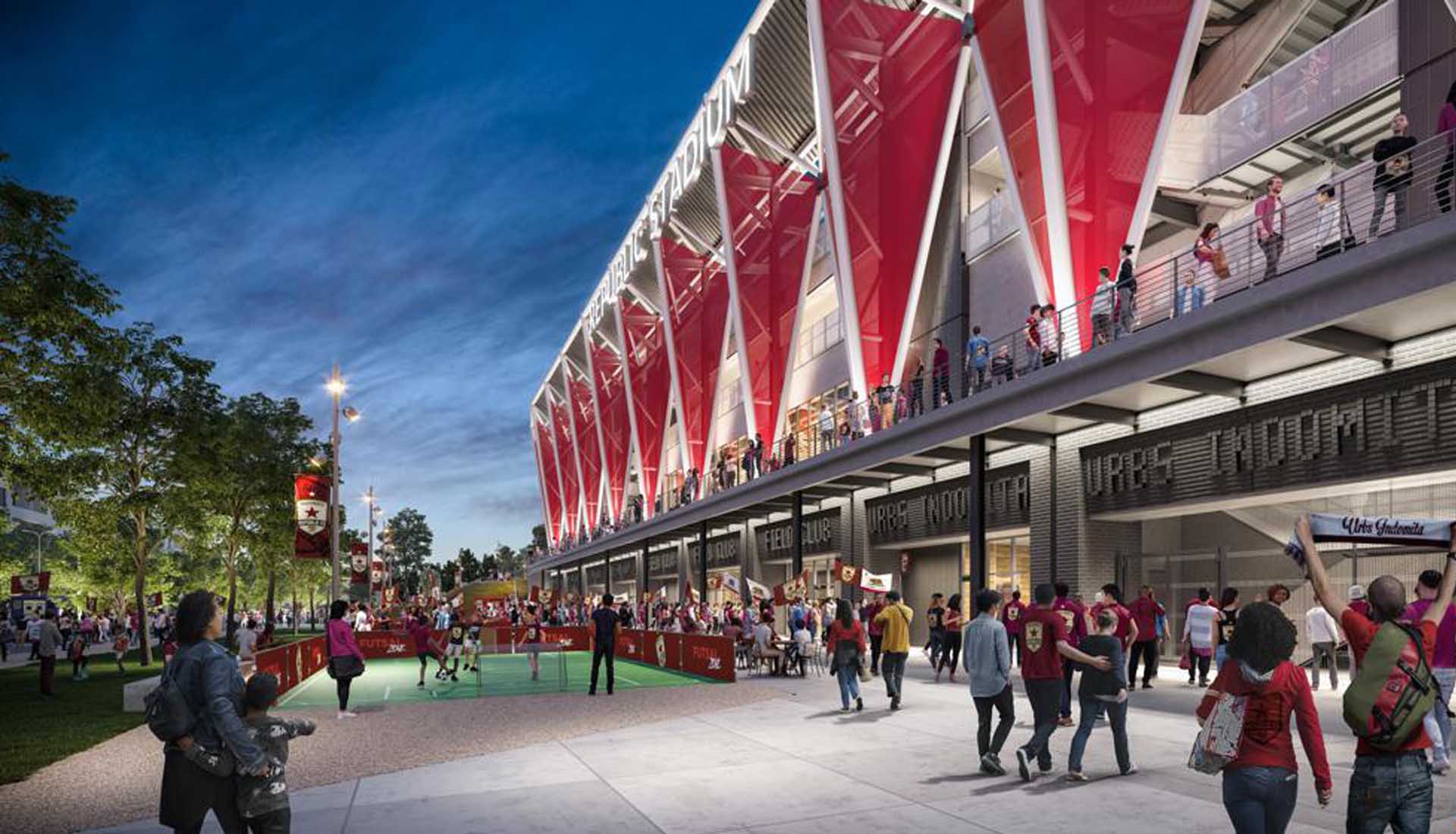 As far as the design goes, the west side would have a plaza-like feature called The Canopy, near the top of the stadium, with the intention being to give the stadium its own unique identity. The site also includes plans for an entertainment district adjacent to the stadium to extend use beyond game days for fans and visitors year-round.