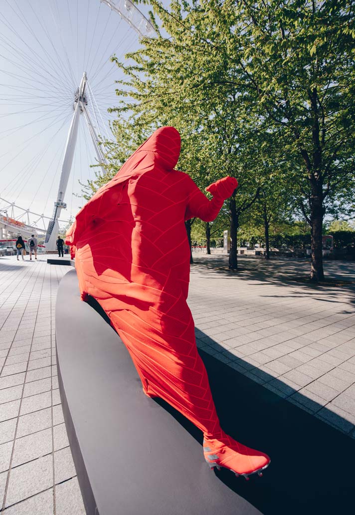 The imposing twelve-meter long installation highlights the unique qualities of the Nemeziz agility bandage as well as of the newly revamped boot itself. “There’s subtle details to the sculpture too, like how the front of the installation mirrors how the agility bandage is on the upper of the boot, so just little details like that really showcase the unique selling point of the product.