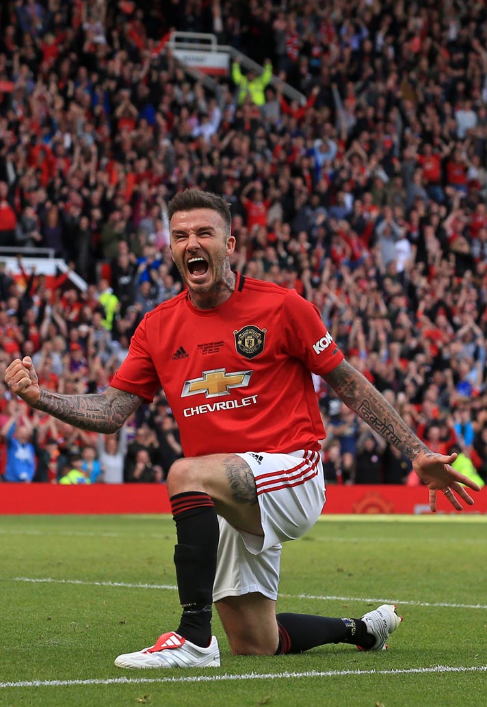 That specific colourway was made famous by Beckham when he wore them to score England's last minute winner at Old Trafford against Greece in 2001 to send his nation to the 2002 World Cup. A fitting conclusion then that his name was on the scoresheet again in the dying seconds as MUFC legends wrapped up a win this afternoon.