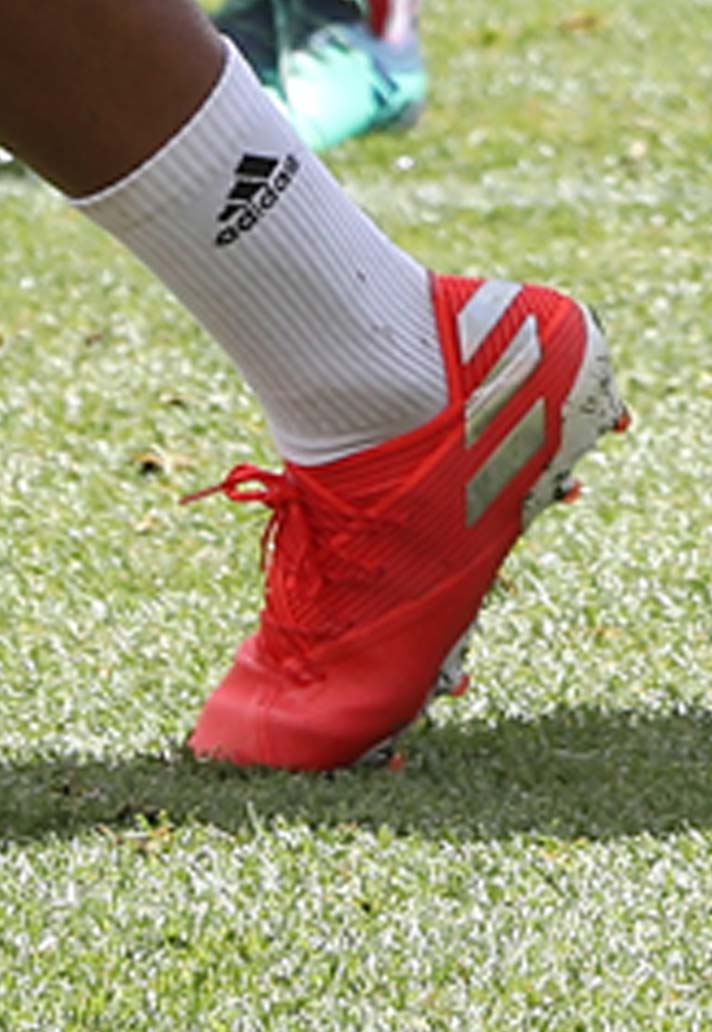 The video shows NBA superstar and adidas ambassador James Harden welcoming Gnabry to the Three Stripes family, before cutting to the man himself cooking up a pair of Nemeziz 19+. Gnabry was seen playing in a prototype of the next-gen Nemeziz back at the end of March in an International match, and he’s been wearing them pretty much ever-since so it’s no real surprise that that appears to be his silo of choice. That was further confirmed when he was seen training in the ‘302 Redirect’ pack colourway today. Contrary to the video though, looks like Gnabry will stick with the Nemeziz 19.1 as opposed to the laceless 19+.