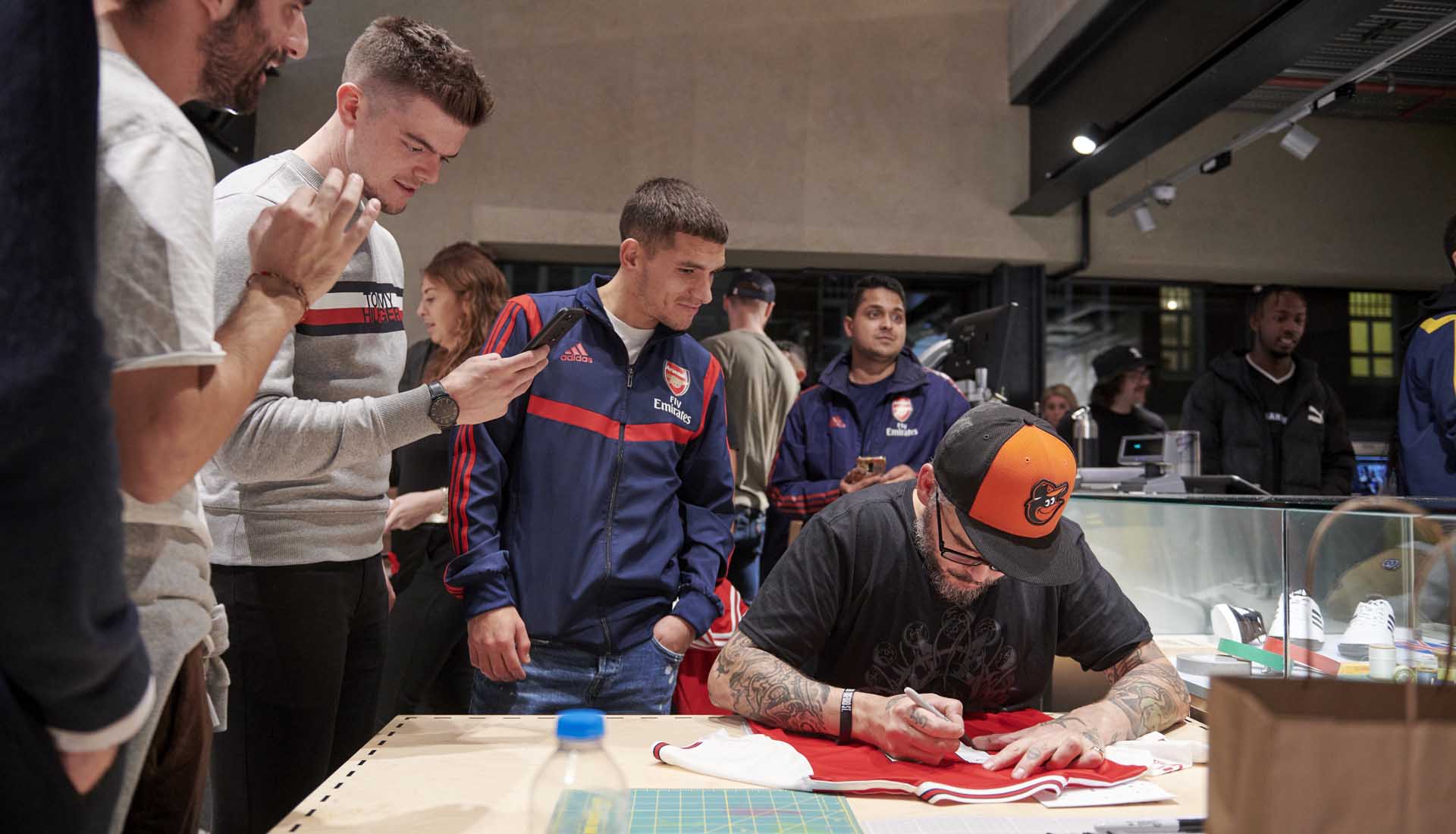 Once the initial excitement surrounding their arrival had passed, the Gunners stars helped fans to customise their kits. “We don’t always get to spend time with the fans face to face, so it was great fun to surprise them and spend some time helping them customise the kit.” said David Luiz. “Some of the designs were really cool. Maybe we found some people to help with next season’s kits!”
