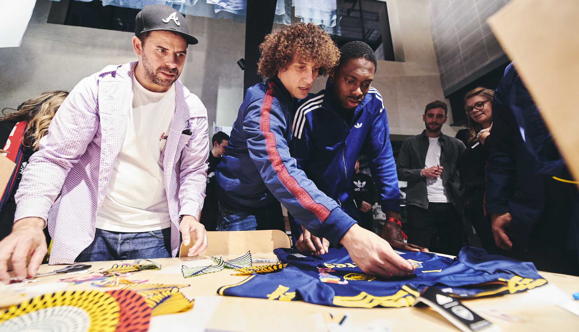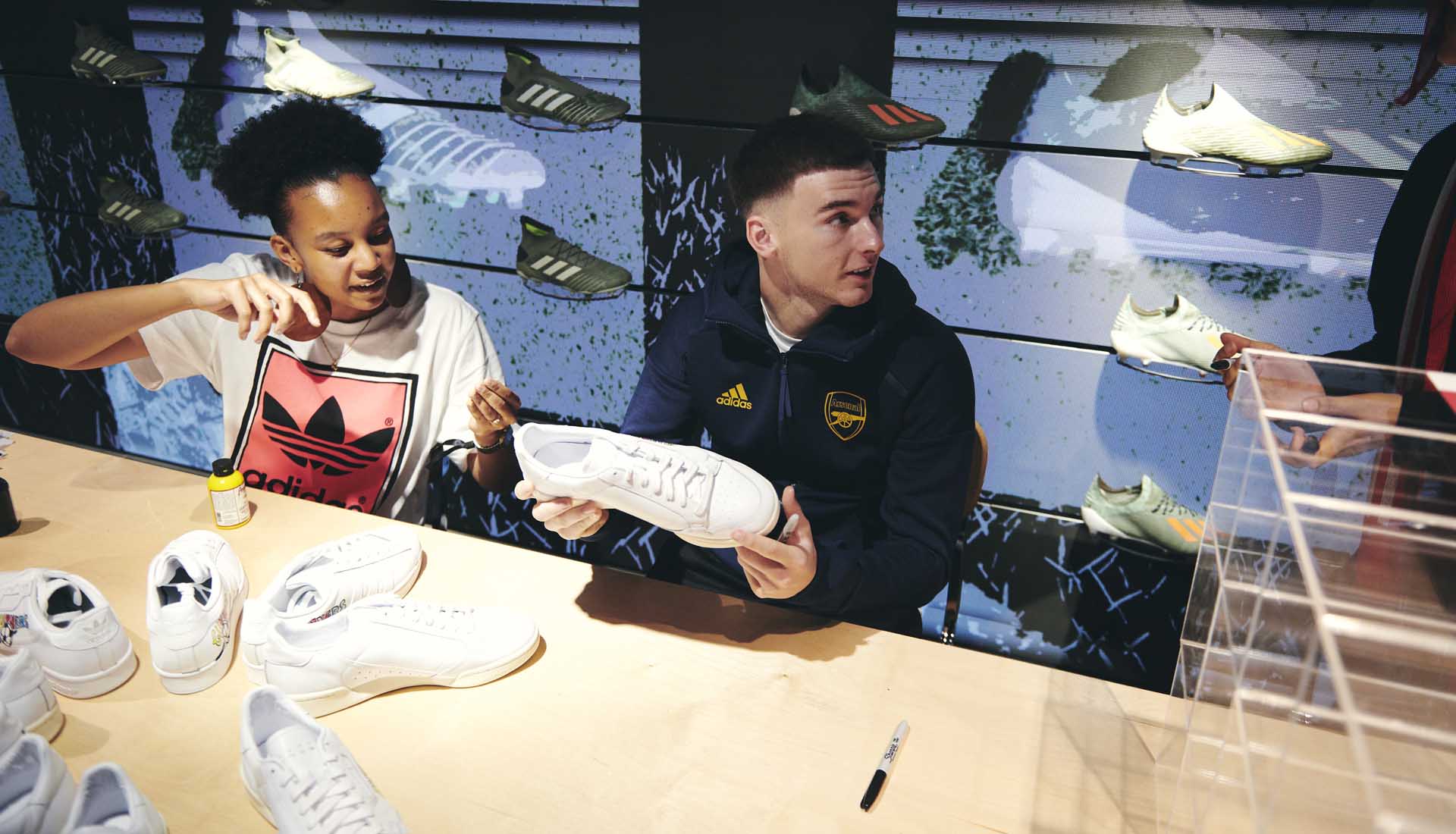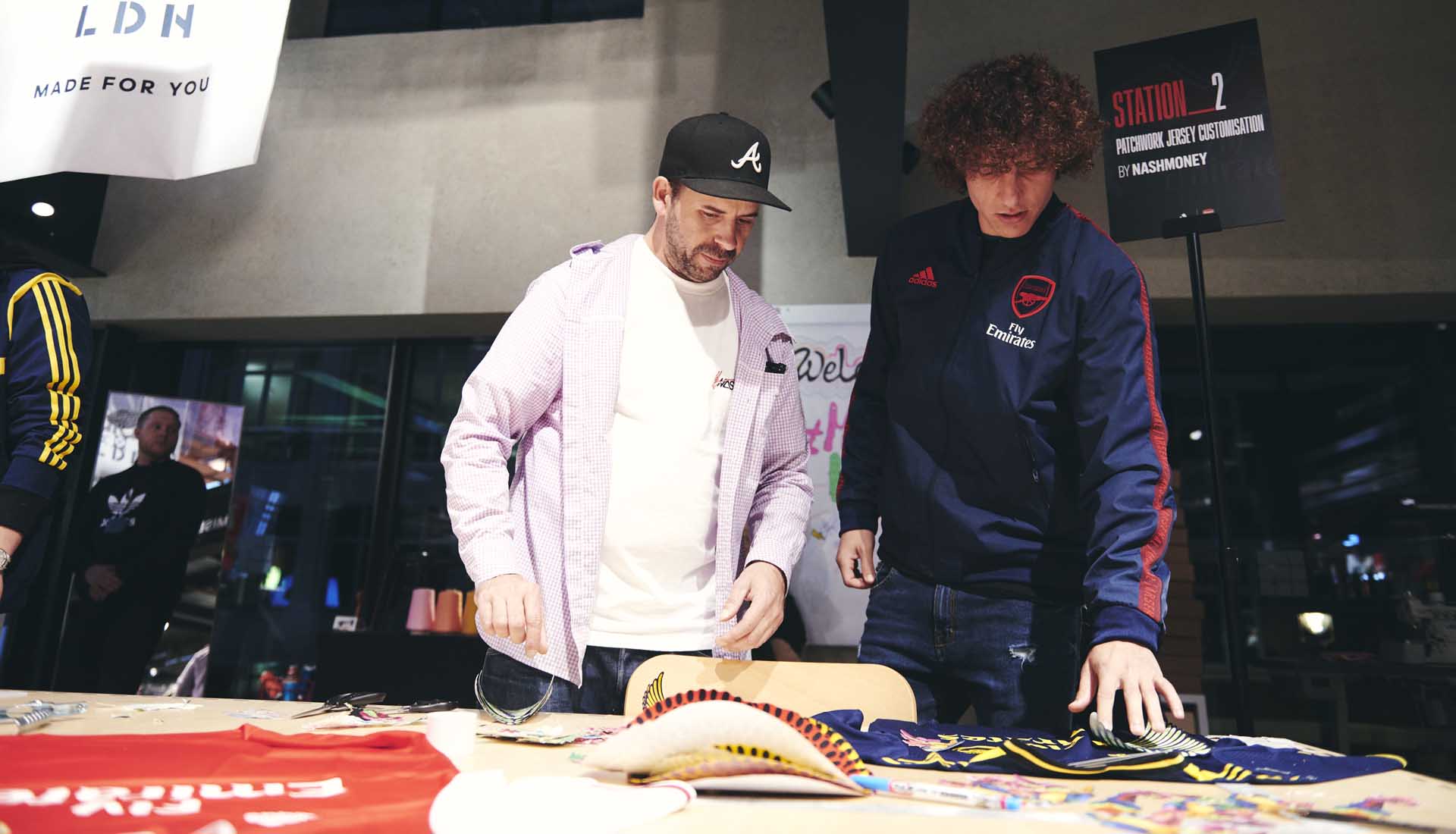 The new adidas LDN flagship store opened on Oxford Street at the end of last month, and it hasn’t taken long for the Three Stripes to flex their collaborative powers, calling in Arsenal stars Mesut Ozil, David Luiz, Lucas Torreira, Kieran Tierney and club legend Ian Wright to surprise fans and Arsenal in the Community participants for a kit-customisation session at the store’s MakerLab.