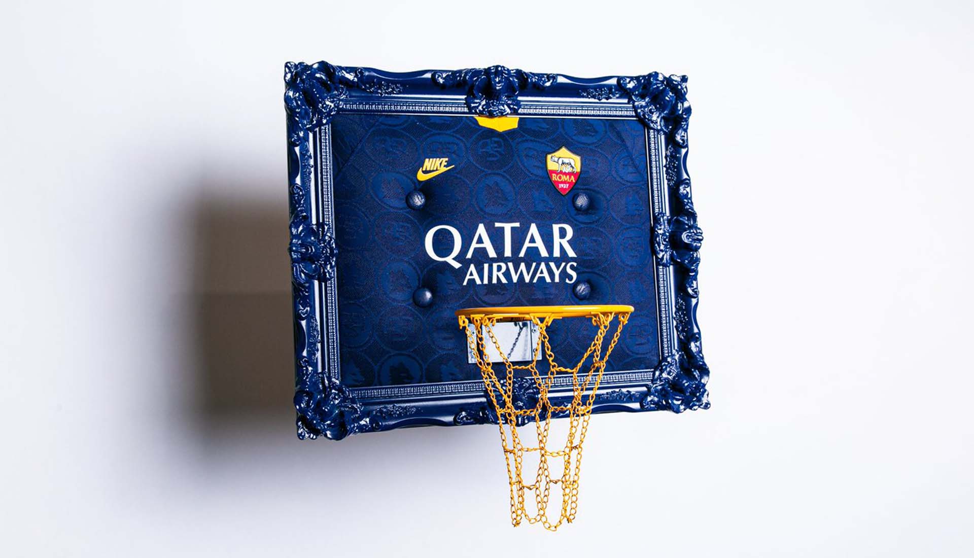 It’s no secret that we’re big fans of this season’s Roma third shirt – we recently ranked it amongst the top five shirts of the decade – and to see it transformed into what is sure to be the centrepiece of any room within which it graces its presence just has us clambering for a bit of this action. So it is with a hint of remorse that we tell you that, following on from their Air Jordan 1 Mid giveaway, AS Roma are giving you the chance to win this “Roma Hoop”. Dn’t feel like you have to enter though. Just saying…