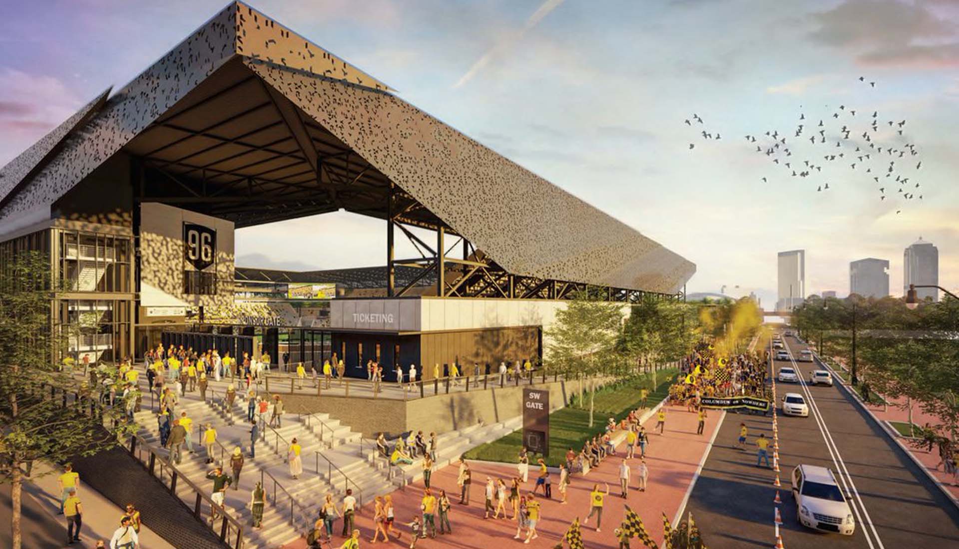 The new imagery shows a more detailed look at the roof that wraps around the stadium and the exclusive, covered entrance for the Nordecke, which will provide an unparalleled experience for premium club members. It also shows off the ‘Crewhouse’ brew hall that’s sure to be a hit with the home faithful. Beyond the stadium, the project includes a riverfront park, nearly 1,000 new residential units and office and commercial space.