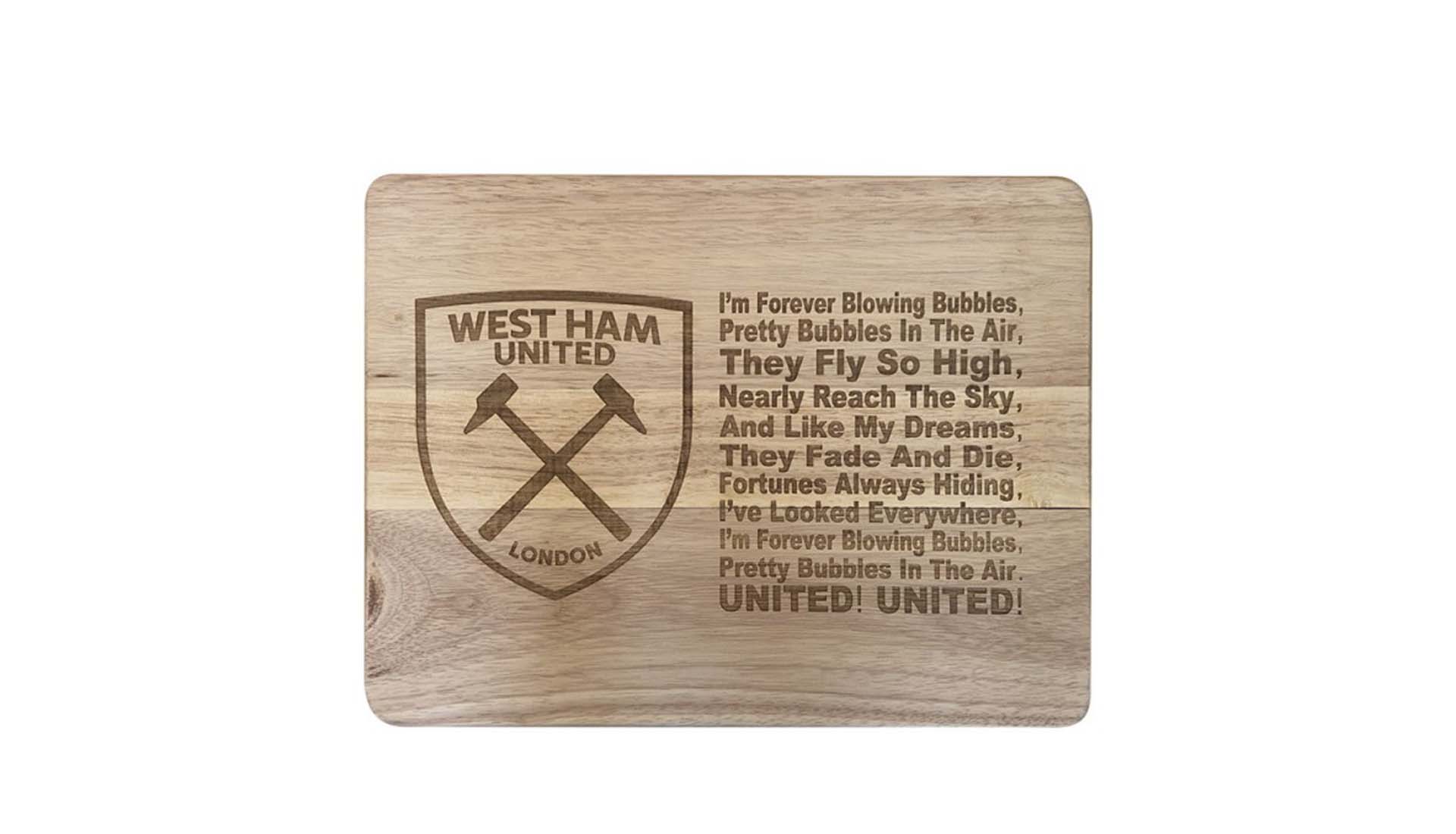Christmas just wouldn't be complete without rolling out a cheese board in the evening. And Hammers fans appear to be in luck this year, with a club branded board, complete with the lyrics to I'm forever blowing bubbles, so you can also learn all the words and not just mumble after "pretty bubbles in the air".