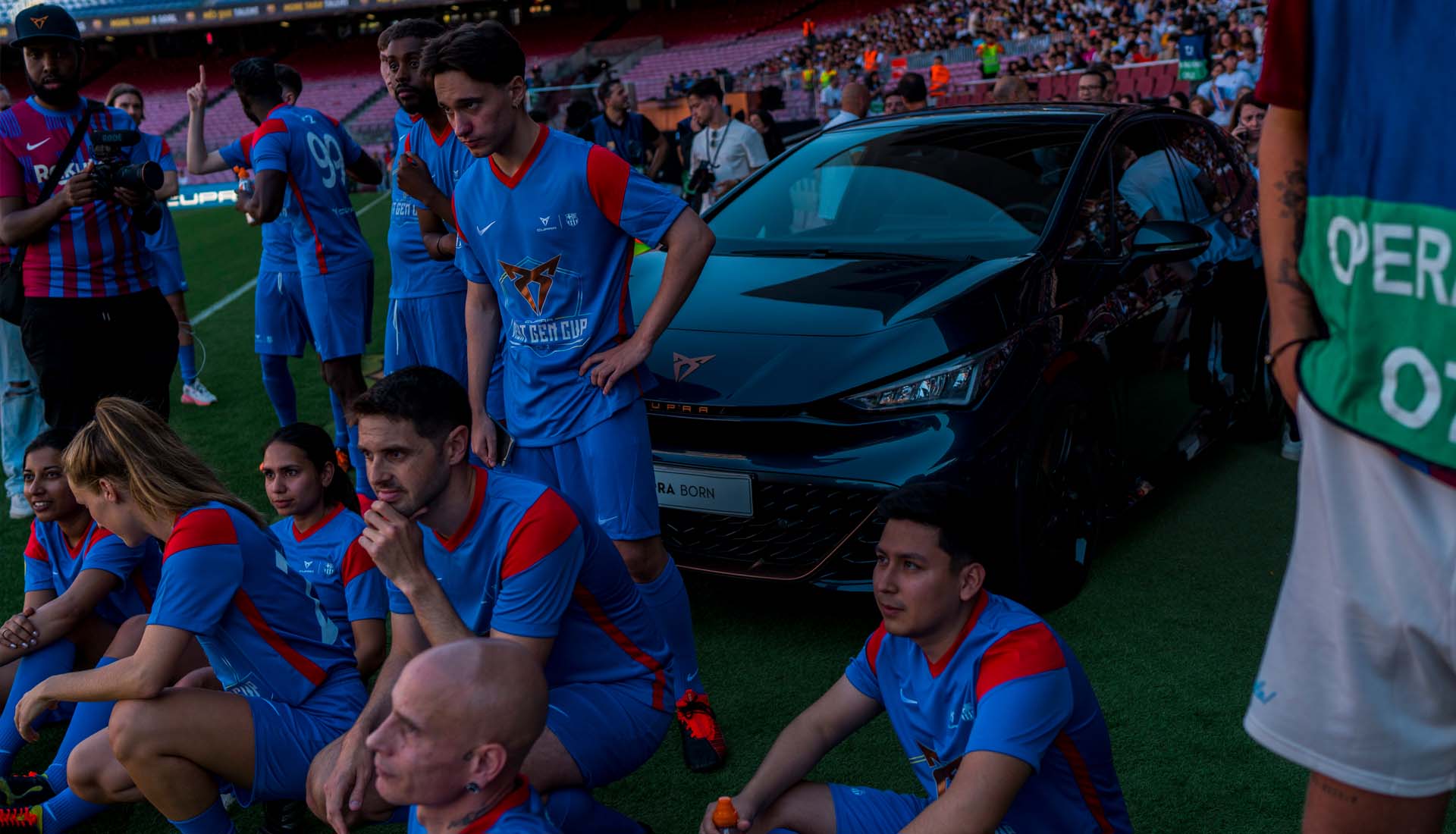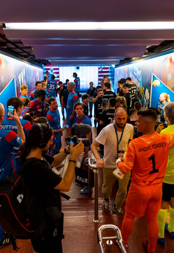 The format saw a team of Spanish e-sports personalities led by Ibai Llanos up against a team made up of CUPRA, SoccerBible and other media partners. Jumping on the Barcelona team bus and arriving at Camp Nou, the teams were greeted by a waiting crowd who were keen to greet their e-sports idols... more so than us... and taking their seats in one of football's most historic stadiums.