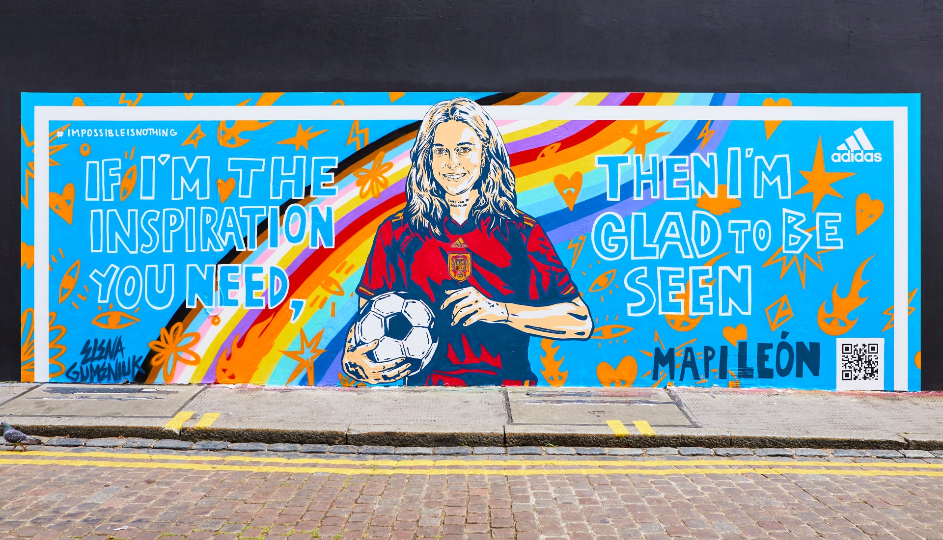 Speaking about her mural, Spain player Mapi Leon said: “I have loved being part of this campaign. I think it’s a great way to show another side of players outside of football and to be able to help inspire anyone who identifies with me or any of the other players involved. The mural is amazing. I really love art, so putting it on the street where everyone who passes by can see it is overwhelming. It’s all incredible!
