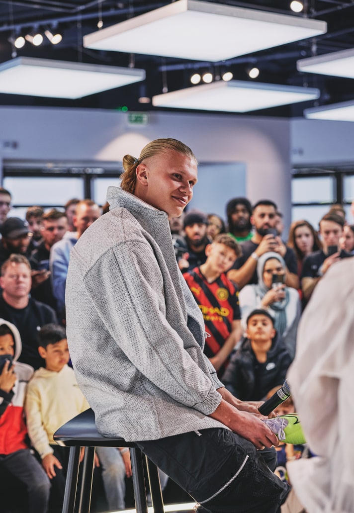 The event saw Haaland arrive at the store to collect his ‘Luminous Pack’ Phantom GX boots, with a Q&A session in front of the crowd, hosted by former Lioness, Alex Scott.