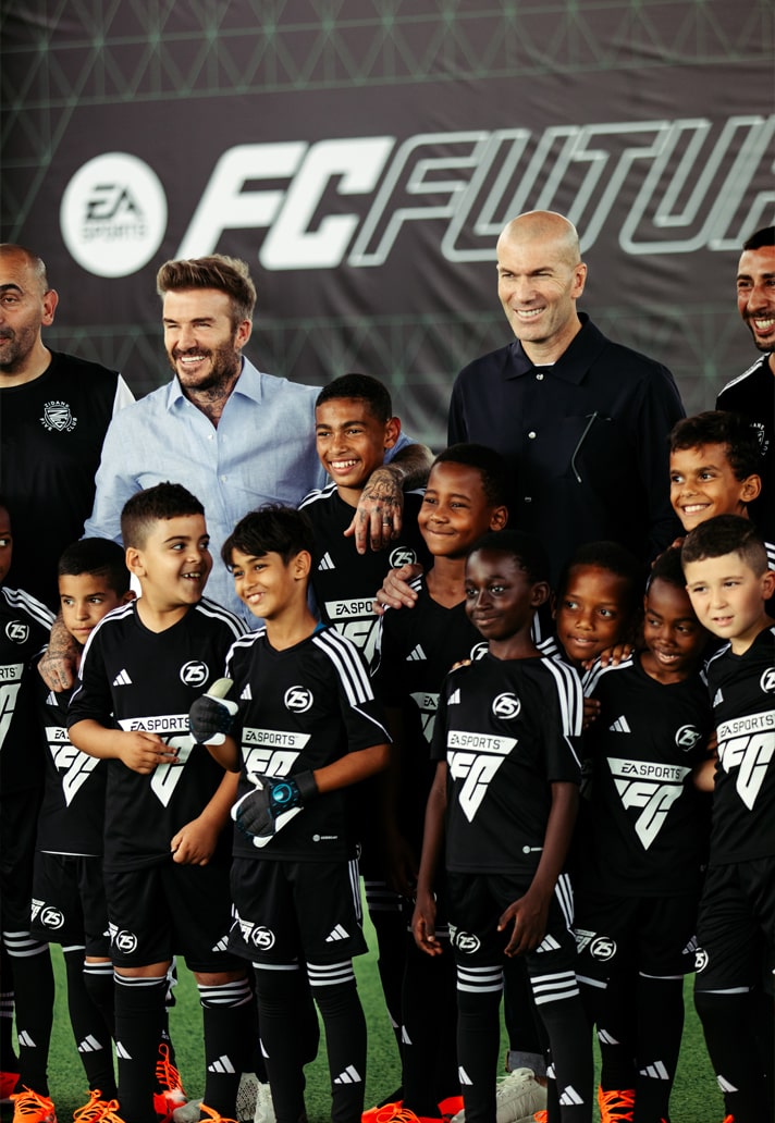 To announce a new partnership and initiative with EA Sports FC Futures programme, Zinedine Zidane hosted a community-level training session with local children from La Castellane in Marseille, including a surprise appearance from former teammate David Beckham.