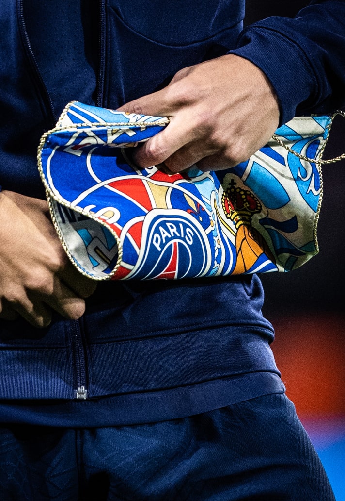 Traditional pennants can be a bit uninspiring in their presentation, but if there's any team in the world on whom you can rely to buck trends and blaze trails, it's PSG, and so they proved, turning to artist Greg Podevin for a bespoke piece for the return of the knockout stages of the Champions League. He set about creating a unique pennant for the occasion, featuring both club crests (pleasing the purists), but presented on a vibrant background made up again of the clubs' crests in the artist's signature style.