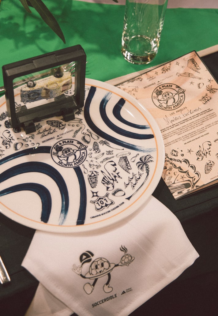 The first stop on SoccerBible’s inaugural “ON A PLATE” Creative Soccer Culture Tour in partnership with adidas saw us pulling up at Miami, where we plated it up with some of the city’s finest to hear their perspectives on the city’s evolving creative soccer scene. And this weekend the tour continued, taking us to our next destination: the City of Angels, Los Angeles. It was a stop that couldn’t have been timed better, with football fever at full height for El Tráfico, making L.A. the place to be as we took up residence at the incredibly impressive adidas Fútbol Society pop-up at 217 S La Brea Ave.