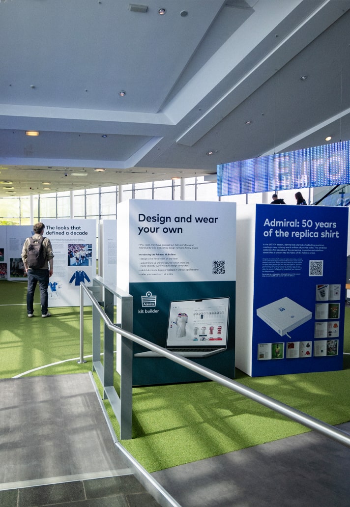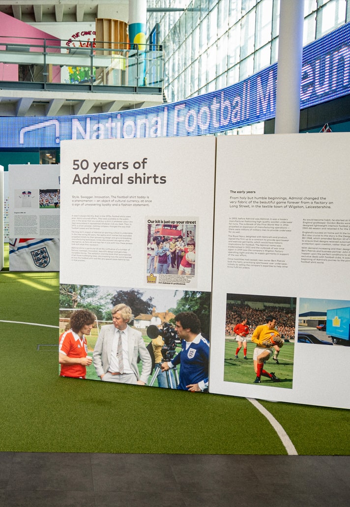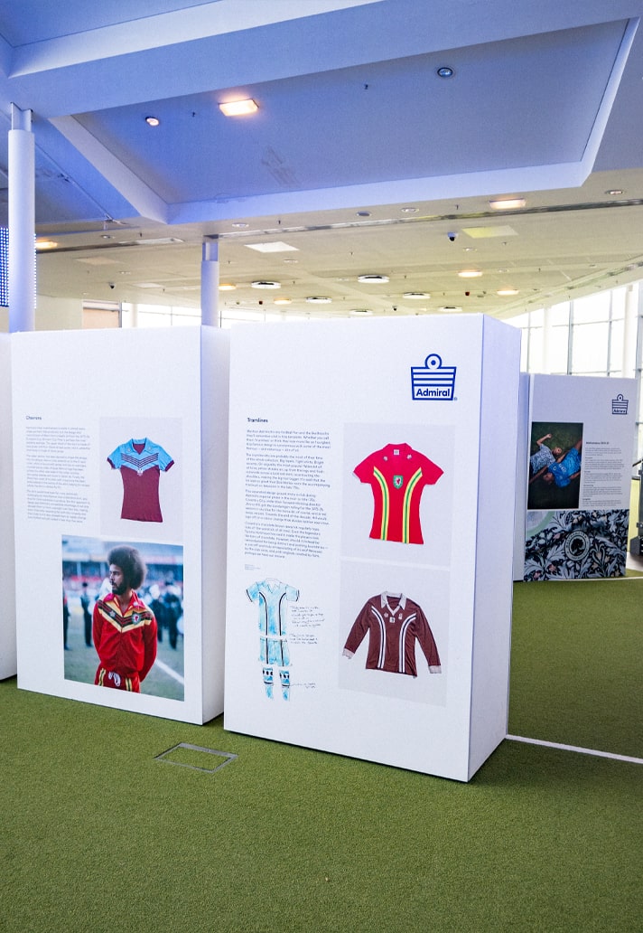 The exhibition showcases some of the iconic stories from five decades of design and football history, which runs in Manchester until the end of July. The exhibition takes newly commissioned photography alongside archive video and images, and original design sketches. It will allow those of all ages to understand more about the history, journey and meaning of the football shirt and Admiral's remarkable role in it.