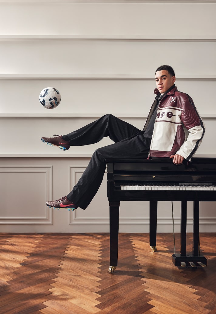 Bronze’s bespoke creation reflects the perfect balance of performance and prestige, much like the Tiempo Luxe itself. It’s a statement of football’s influence on fashion, reimagined through the lens of a timeless boot and two players rewriting the rules of style on and off the pitch.