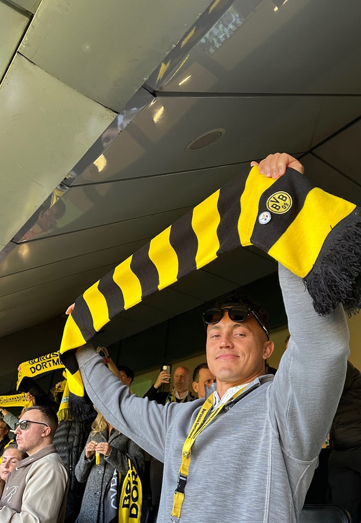To celebrate the partnership, BVB hosted a Steelers delegation visit to Dortmund with Miles Killebrew (two times Pro Bowler) to experience the incredible atmosphere at Signal Iduna Park and it’s world-famous ‘Yellow Wall’ first-hand. Back in December 2024, the Steelers welcomed BVB to Pittsburgh for a home game at the Acrisure Stadium. Former Dortmund player Patrick Owomoyela, a life-long Steelers fan, had the opportunity to link up with Super Bowl MVP Santonio Holmes. There were also chances to swap jerseys and collaborate on content.