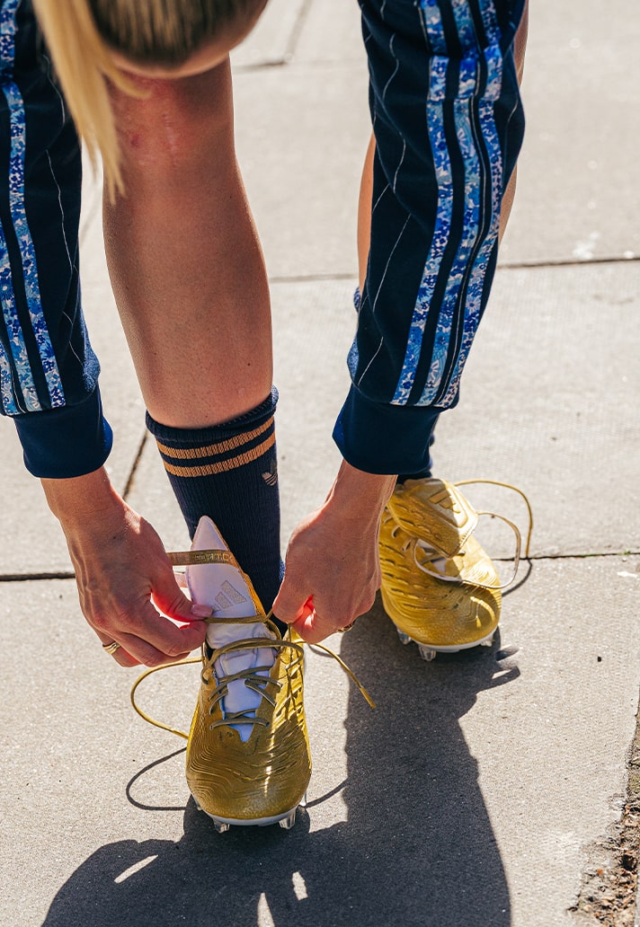 Any one who has any prescence on social media would've seen that is has officially been declared 'boots only summer', and no they don't mean UGG boots. Everyone is casually wearing their favourite football boots paired with everyday garms, taking the studs from the pitch to the pavement. Well, adidas and their star girl Alessia Russo are taking it to the next level – declaring 'Golden Boots only summer'.
