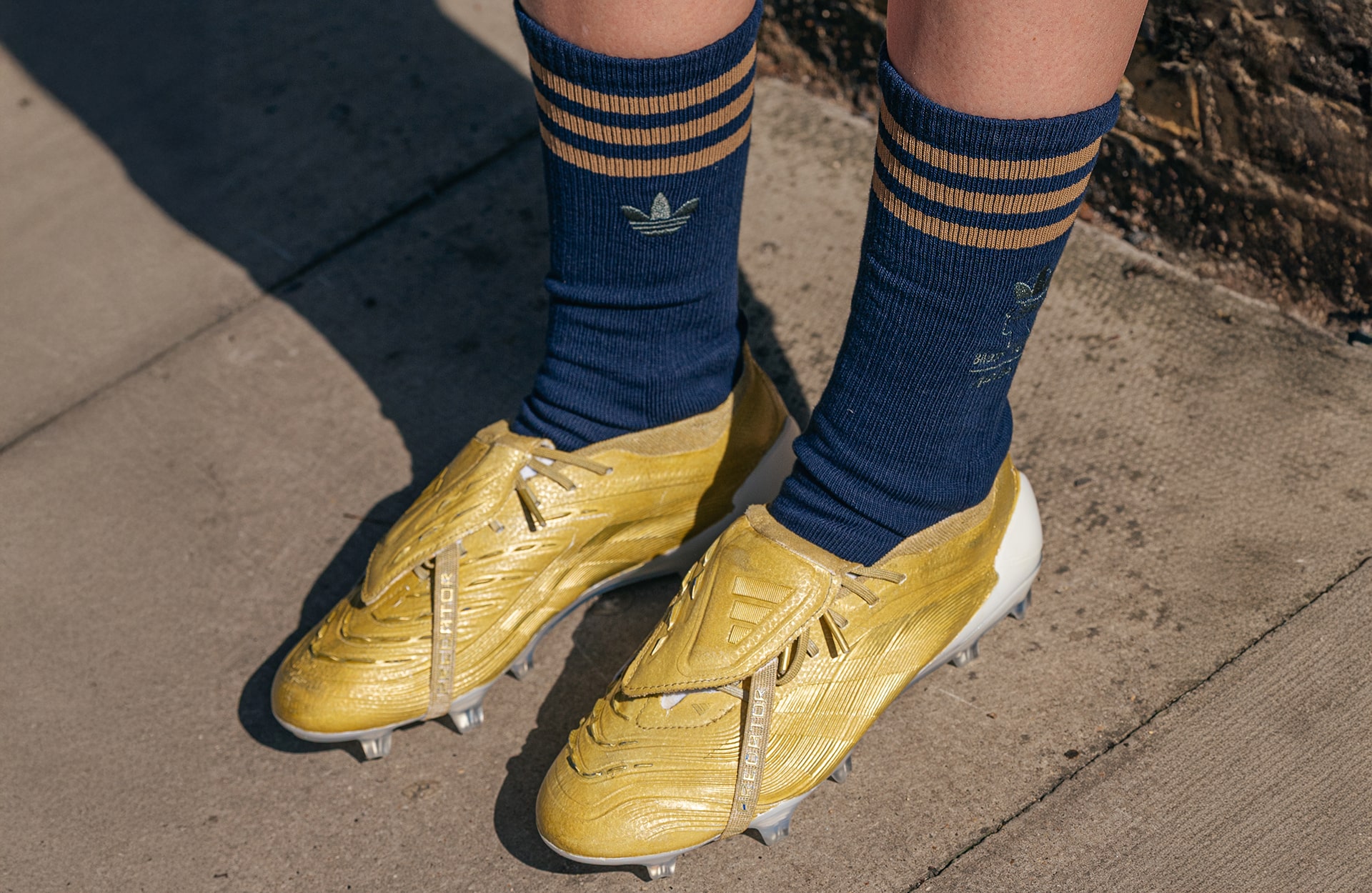 Now, immediately when you glance at a bespoke golden Predator, you have to think of Zizou and those incredible Precision's that were gifted to him by adi for winning FIFA World Player of the Year. But this year thre Three stripes are changing the narrative, focusing on golden girl Alessia bagging goals in the WSL for fun. With the league campaign officially finished, all eyes move onto the Women's Champions League Final and the Euros in the summer, where Russo will be looking to pick up silverware in her hands to match the gold on her feet.