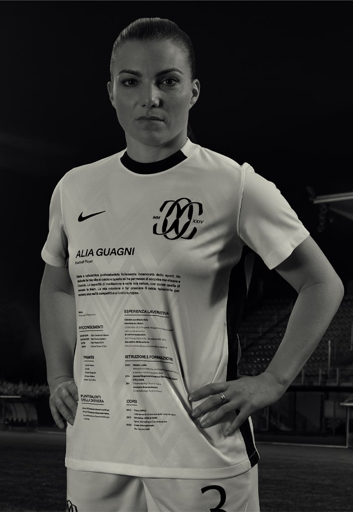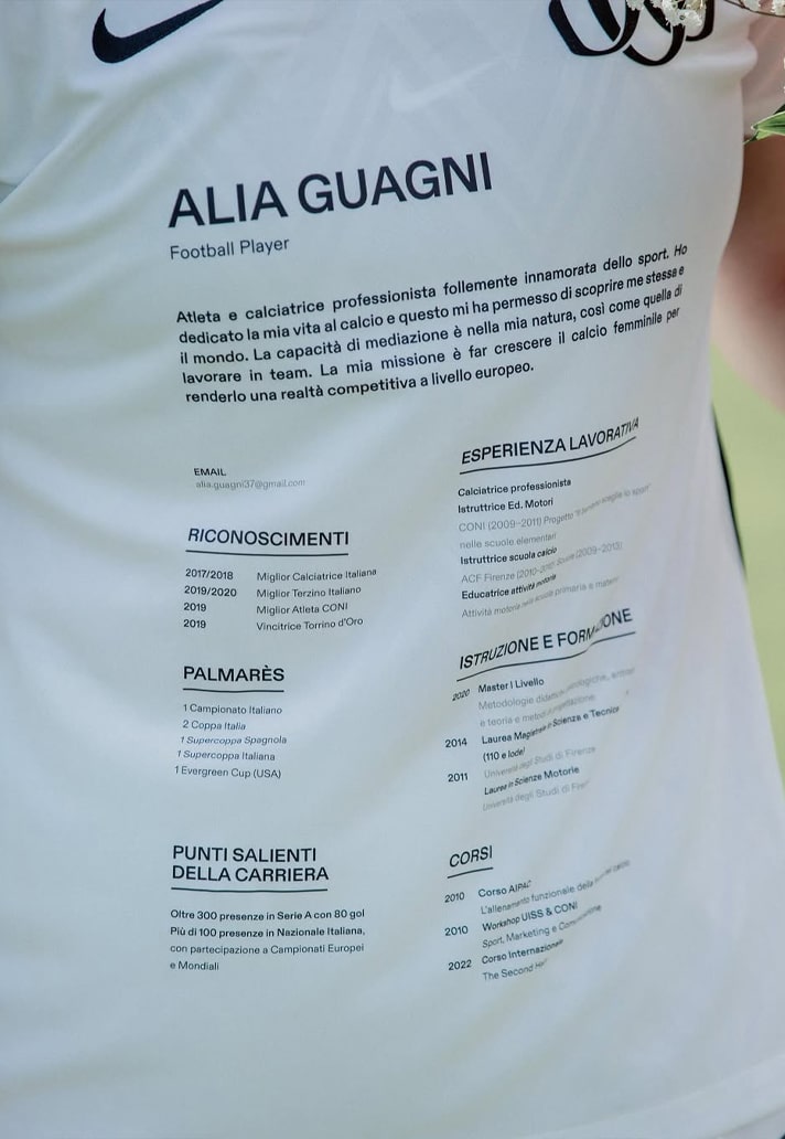 In partnership with international creative agency LePub, Guagni and F.C. Como Women created something that speaks louder than words ever could—a jersey printed with her professional résumé. Not stats, not slogans—her CV. The clubs, the trophies, the battles fought on and off the pitch. A career, made wearable. A statement, made unmissable. Because when the final whistle blows, the game doesn’t stop—but the spotlight often does.