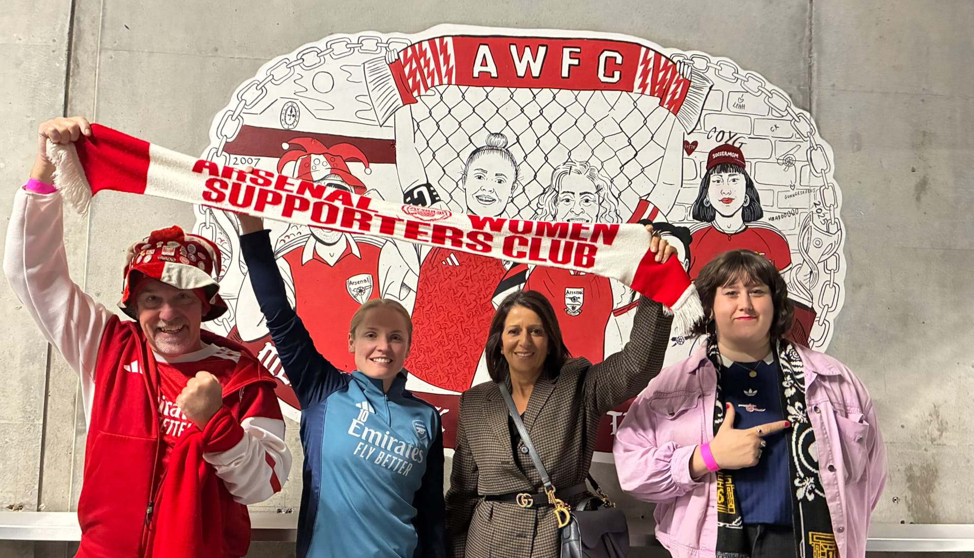 The results so far speak for themselves. A mural in Block 26 pays tribute to Kim Little and the late Maria Petri, a name etched into the soul of Arsenal Women. The North Bank now boasts a flag display that will become a permanent fixture on matchdays. Music has been redefined, with playlists and walkout tracks curated to amplify the energy. Even the countdown to kick-off has been transformed, complete with hype films and live brass performances from She’s Got Brass, London’s only all-female 10-piece brass band.