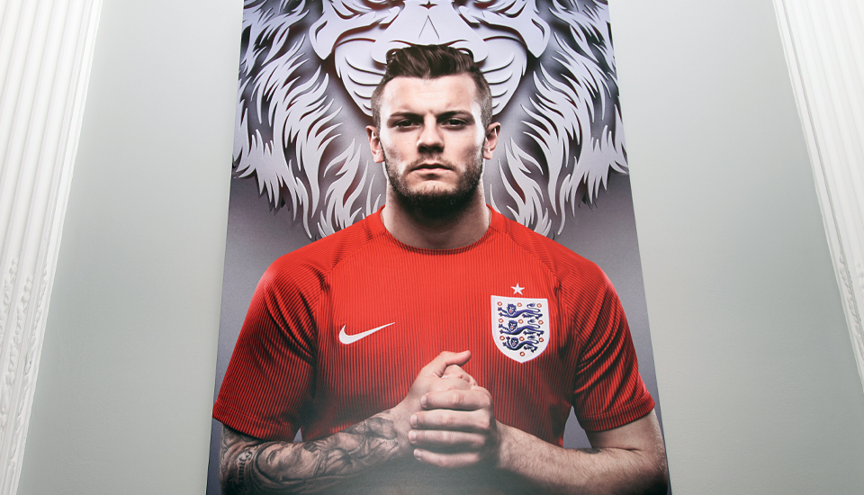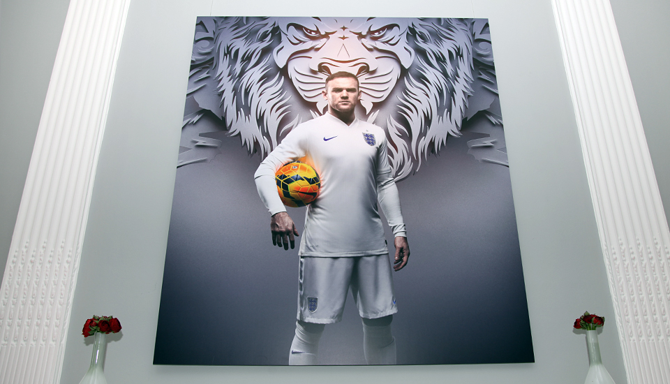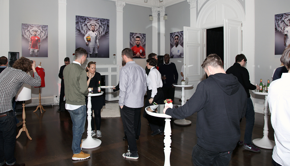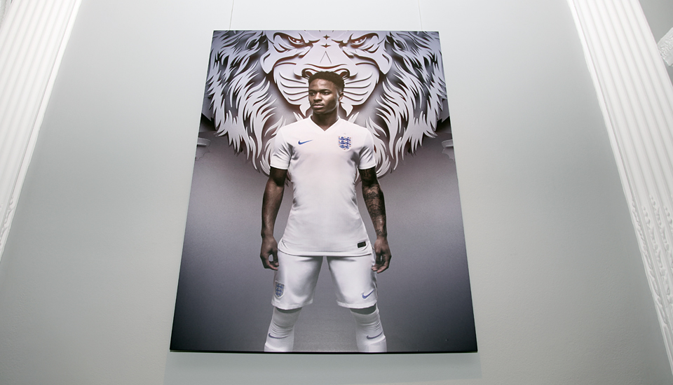 The exhibition showcased photography on the gallery walls of the England players kitted out in the new home and away strips, stood in front of one of the famous Three Lions that sit proud on the crest.