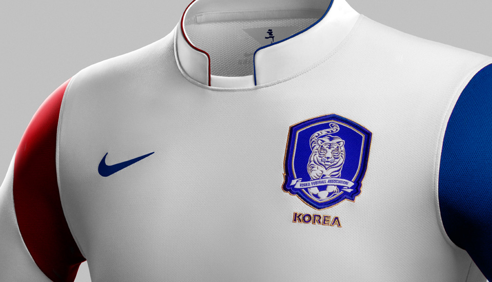 The design team wanted to give Korea a unique collar, one that has clear Asian influences and draws inspiration from classic Korean attire. Inside the back of the neck, a pennant tab features a Tuhon symbol in traditional Korean calligraphy that translates as "Fighting Spirit" and represents the inherent qualities of Korean football.