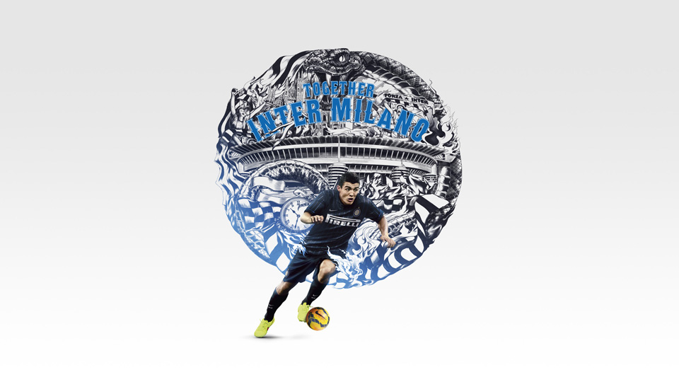 Inside the back of the neck is a pennant tab featuring the St. George’s cross to represent the city of Milan’s coat of arms. On the back of the neck is "Inter" in a specially designed font, which has been used by the Nerrazzurri’s most commited fans on flags and banners inside the San Siro since the 1970s. The new home shorts are black with a thin blue stripe along each side, and the new home socks are black with a wide tonal stripe of chevrons on the back. In another change, player name and numbering will appear in blue, as opposed to being white in recent years.
