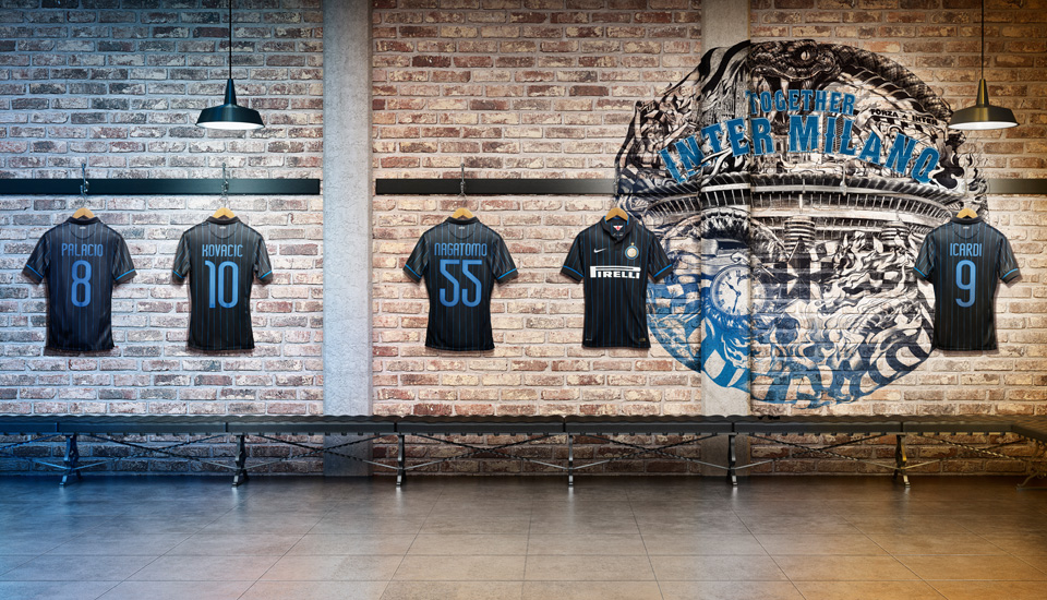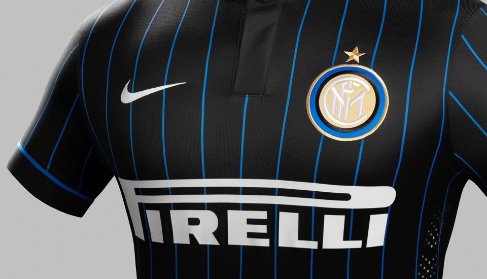 In need of some inspiration after a disappointing 2013/14 campaign, Inter Milan get a fresh new look courtesy of the Swoosh. For the first time in the club's history, Inter Milan will sport a pinstripe design, replacing the evenly sized black and blue stripes. Inspired by the fashion houses of Milan, the 2014/15 Inter Milan home shirt is black with a thin blue pinstripe and an enlarged and slightly altered club crest. The jersey has a tailored black collar with a thin blue trim, which has a button at the top and a placket with a hidden button.