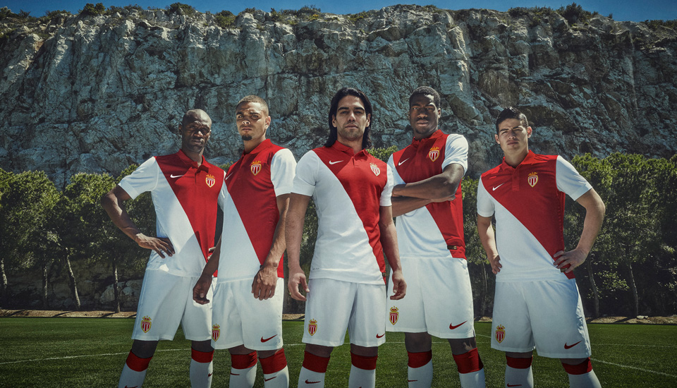 17 | Monaco Home - The diagonal split and old-school fold over collar fire the Monaco shirt into our list. The white sleeves and sponsorless chest aren't doing it any harm either. That chap on the far right won't be wearing it though.